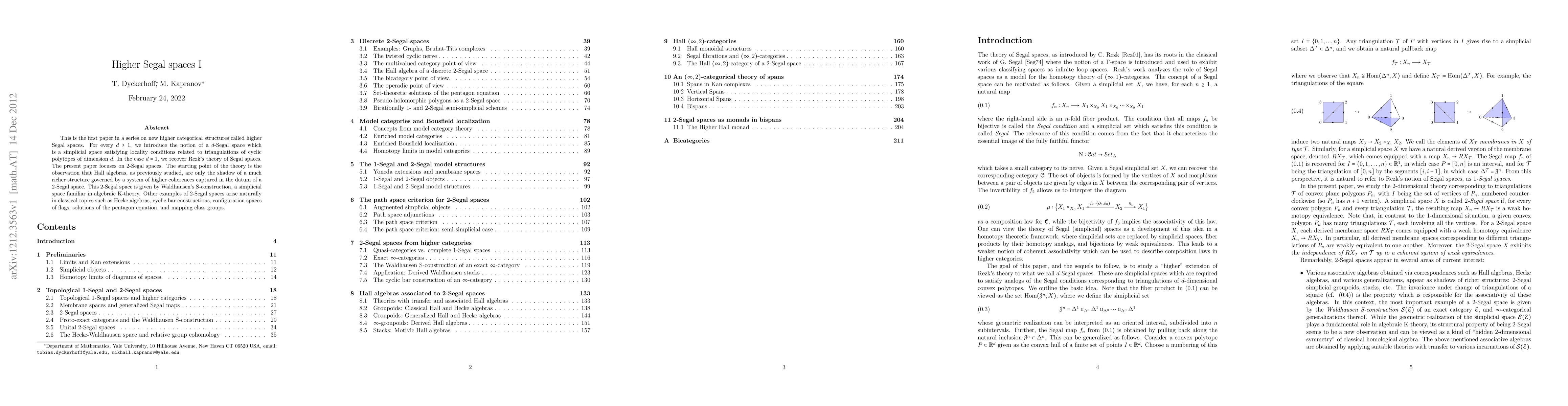 This is the first paper in a series on new higher categorical structures called higher Segal spaces. For every d > 0, we introduce the notion of a d-Segal space which is a simplicial space satisfying locality conditions related to triangulations of cyclic polytopes of dimension d. In the case d=1, we recover Rezk's theory of Segal spaces. The present paper focuses on 2-Segal spaces. The starting point of the theory is the observation that Hall algebras, as previously studied, are only the shadow of a much richer structure governed by a system of higher coherences captured in the datum of a 2-Segal space. This 2-Segal space is given by Waldhausen's S-construction, a simplicial space familiar in algebraic K-theory. Other examples of 2-Segal spaces arise naturally in classical topics such as Hecke algebras, cyclic bar constructions, configuration spaces of flags, solutions of the pentagon equation, and mapping class groups.
