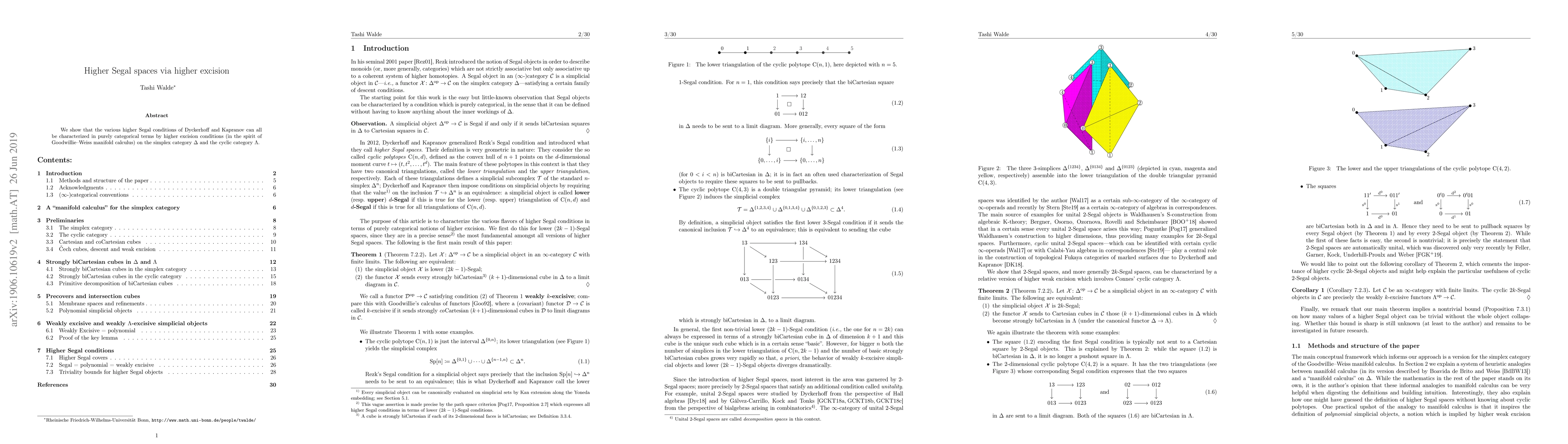 This paper demonstrates that Dyckerhoff and Kapranov's higher Segal conditions can be fully described using higher excision conditions on the simplex category $\Delta$ and the cyclic category $\Lambda$, akin to Goodwillie-Weiss manifold calculus. These categorical characterizations provide a new framework for understanding higher Segal spaces.