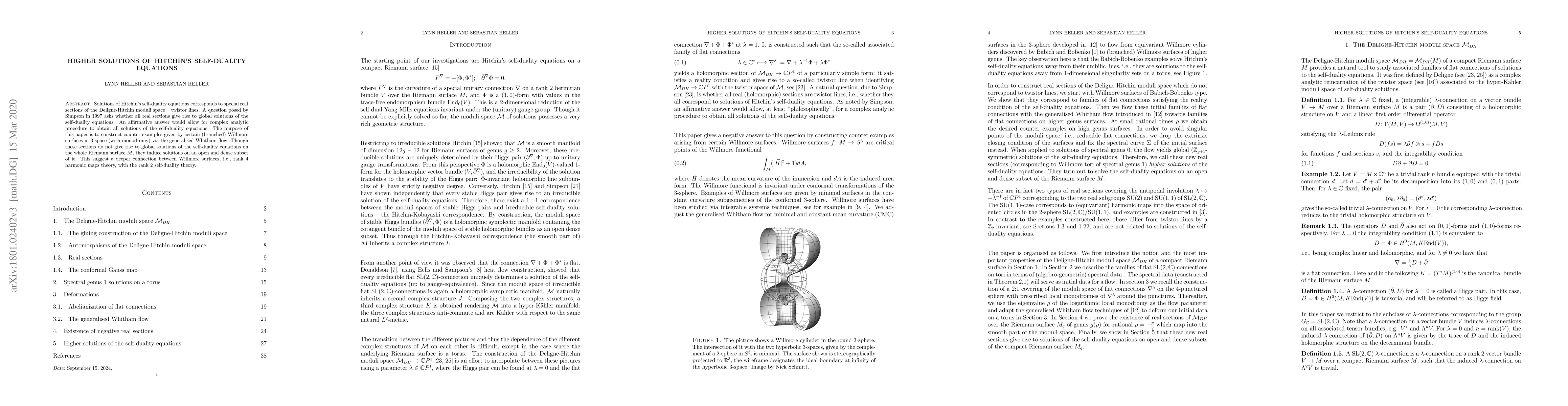 This paper constructs higher solutions of Hitchin's self-duality equations via branched Willmore surfaces, demonstrating that not all real sections lead to global solutions. These solutions exist on open dense subsets, hinting at a deeper connection between Willmore surfaces and self-duality theory.