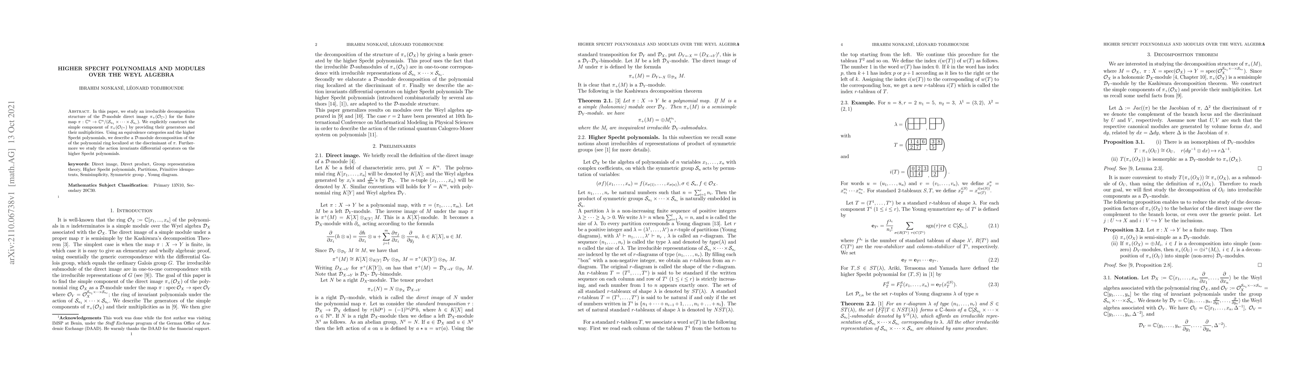 In this paper, we study an irreducible decomposition structure of the $\Dc$-module direct image $\pi_+(\Oc_{ \bC^n})$ for the finite map $\pi: \bC^n \to \bC^n/ ({\Sc_{n_1}\times \cdots \times \Sc_{n_r}}).$ We explicitly construct the simple component of $\pi_+(\Oc_{\bC^n})$ by providing their generators and their multiplicities. Using an equivalence of categories and the higher Specht polynomials, we describe a $\D$-module decomposition of the polynomial ring localized at the discriminant of $\pi$. Furthermore, we study the action invariants, differential operators, on the higher Specht polynomials.