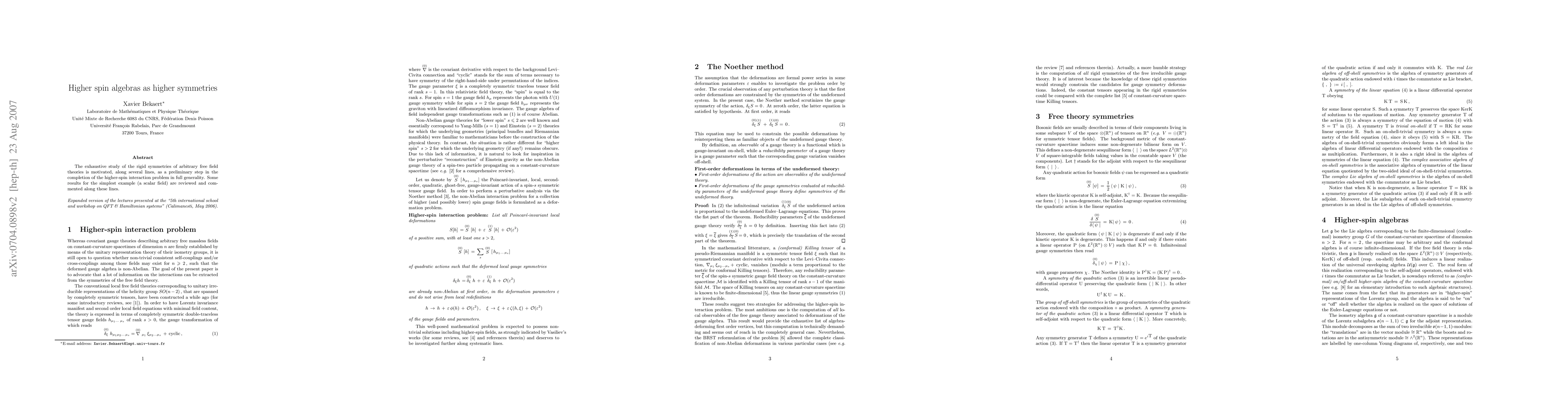 The exhaustive study of the rigid symmetries of arbitrary free field theories is motivated, along several lines, as a preliminary step in the completion of the higher-spin interaction problem in full generality. Some results for the simplest example (a scalar field) are reviewed and commented along these lines.
