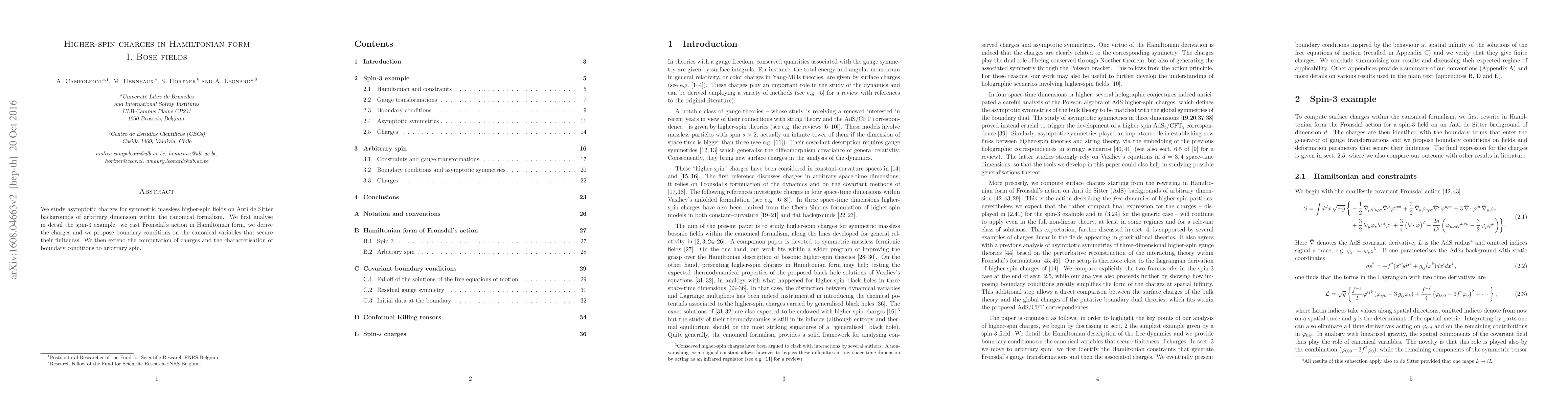 We study asymptotic charges for symmetric massless higher-spin fields on Anti de Sitter backgrounds of arbitrary dimension within the canonical formalism. We first analyse in detail the spin-3 example: we cast Fronsdal's action in Hamiltonian form, we derive the charges and we propose boundary conditions on the canonical variables that secure their finiteness. We then extend the computation of charges and the characterisation of boundary conditions to arbitrary spin.