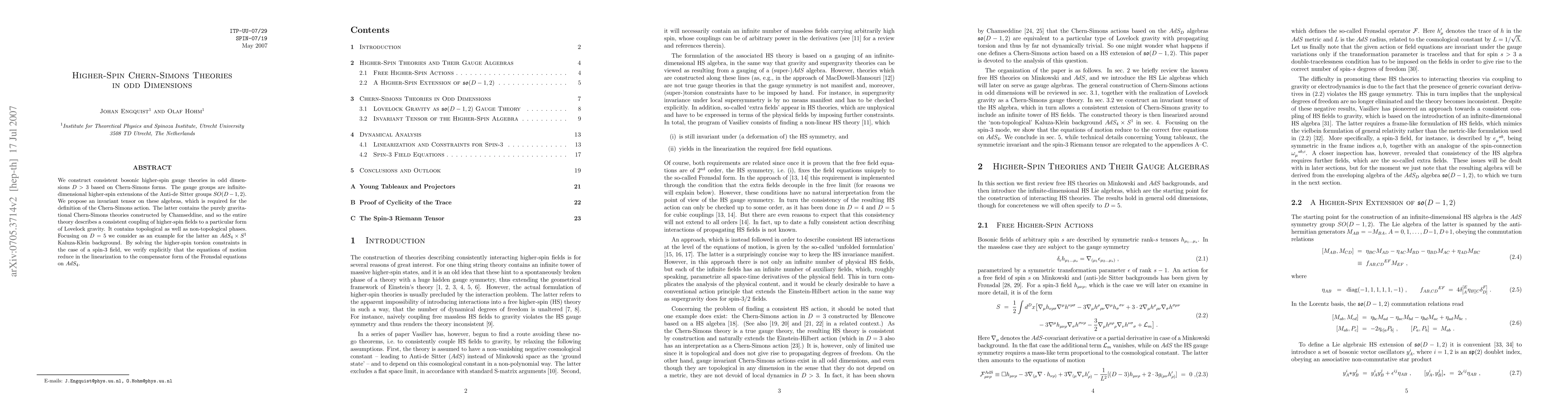 We construct consistent bosonic higher-spin gauge theories in odd dimensions D>3 based on Chern-Simons forms. The gauge groups are infinite-dimensional higher-spin extensions of the Anti-de Sitter groups SO(D-1,2). We propose an invariant tensor on these algebras, which is required for the definition of the Chern-Simons action. The latter contains the purely gravitational Chern-Simons theories constructed by Chamseddine, and so the entire theory describes a consistent coupling of higher-spin fields to a particular form of Lovelock gravity. It contains topological as well as non-topological phases. Focusing on D=5 we consider as an example for the latter an AdS_4 x S^1 Kaluza-Klein background. By solving the higher-spin torsion constraints in the case of a spin-3 field, we verify explicitly that the equations of motion reduce in the linearization to the compensator form of the Fronsdal equations on AdS_4.