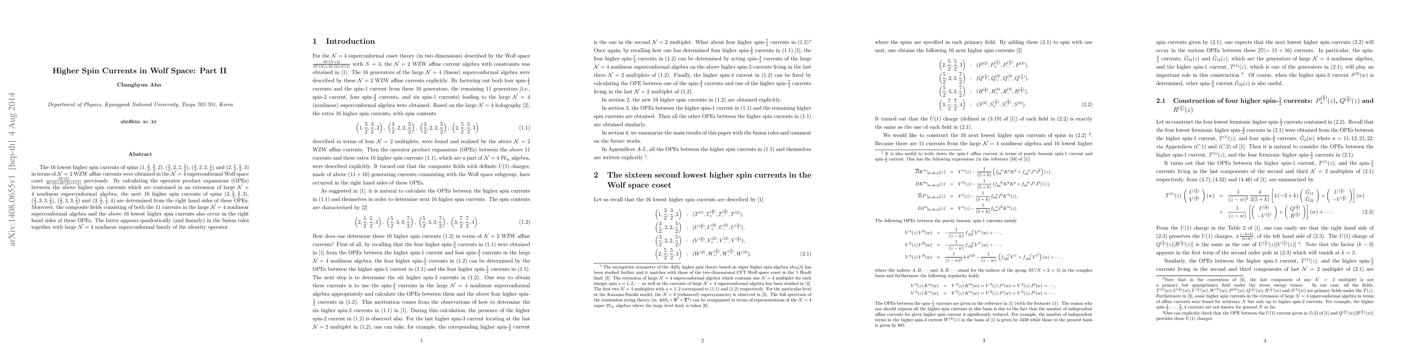 This paper determines the next 16 higher spin currents in the N=4 superconformal Wolf space coset SU(5)/[SU(3) x SU(2) x U(1)] by calculating operator product expansions between previously identified 16 lower spin currents. It also identifies composite fields from the fusion rules involving these higher spin currents and the existing large N=4 nonlinear superconformal algebra.