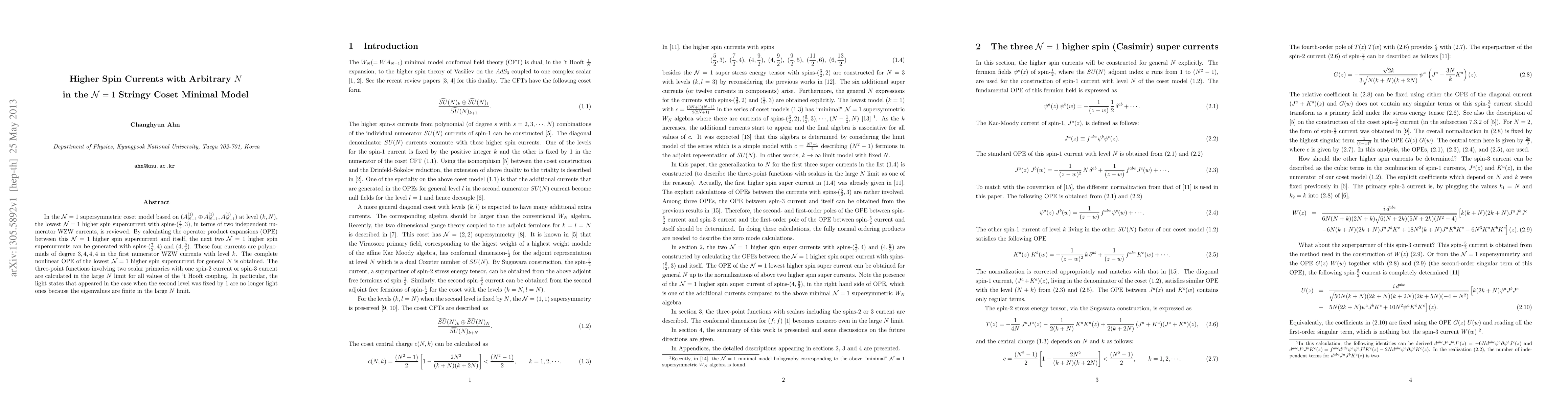 This research explores the generation and operator product expansions of N=1 higher spin supercurrents in the stringy coset minimal model, establishing a complete nonlinear OPE for general N. It calculates three-point functions in the large N limit, showing that previously light states become finite in eigenvalue due to fixed second-level constraints.
