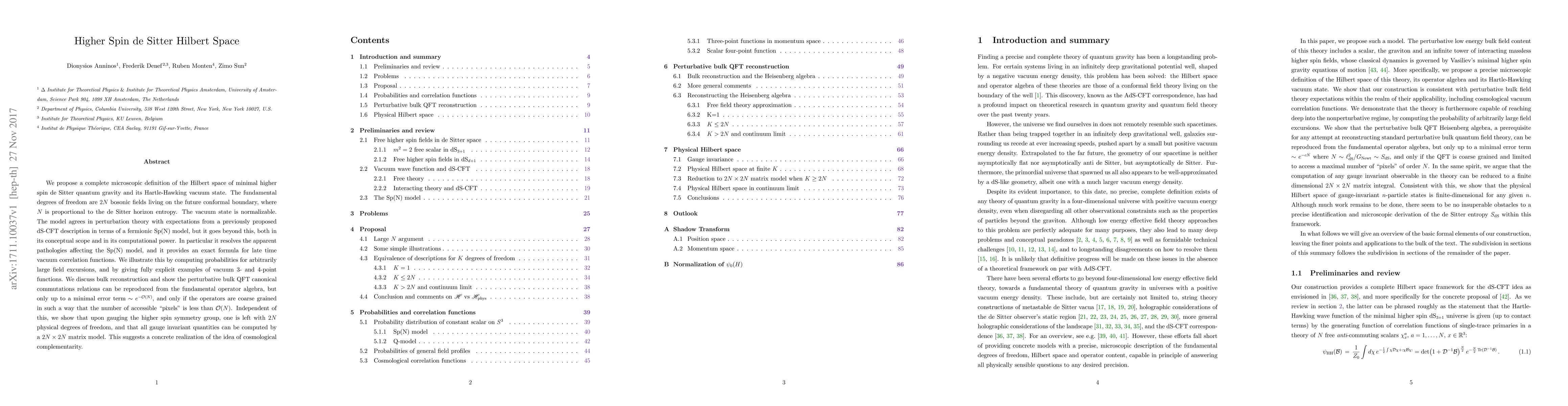 We propose a complete microscopic definition of the Hilbert space of minimal higher spin de Sitter quantum gravity and its Hartle-Hawking vacuum state. The fundamental degrees of freedom are $2N$ bosonic fields living on the future conformal boundary, where $N$ is proportional to the de Sitter horizon entropy. The vacuum state is normalizable. The model agrees in perturbation theory with expectations from a previously proposed dS-CFT description in terms of a fermionic Sp(N) model, but it goes beyond this, both in its conceptual scope and in its computational power. In particular it resolves the apparent pathologies affecting the Sp(N) model, and it provides an exact formula for late time vacuum correlation functions. We illustrate this by computing probabilities for arbitrarily large field excursions, and by giving fully explicit examples of vacuum 3- and 4-point functions. We discuss bulk reconstruction and show the perturbative bulk QFT canonical commutations relations can be reproduced from the fundamental operator algebra, but only up to a minimal error term $\sim e^{-\mathcal{O}(N)}$, and only if the operators are coarse grained in such a way that the number of accessible "pixels" is less than $\mathcal{O}(N)$. Independent of this, we show that upon gauging the higher spin symmetry group, one is left with $2N$ physical degrees of freedom, and that all gauge invariant quantities can be computed by a $2N \times 2N$ matrix model. This suggests a concrete realization of the idea of cosmological complementarity.