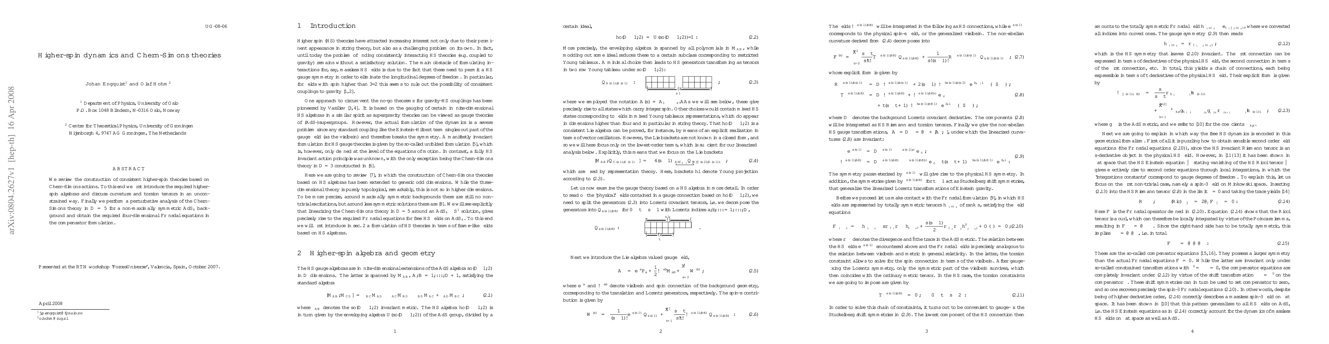 This paper reviews the construction of higher-spin theories using Chern-Simons actions, introduces higher-spin algebras, and analyzes a D=5 Chern-Simons theory to derive four-dimensional Fronsdal equations in a compensator framework for AdS(4) backgrounds.