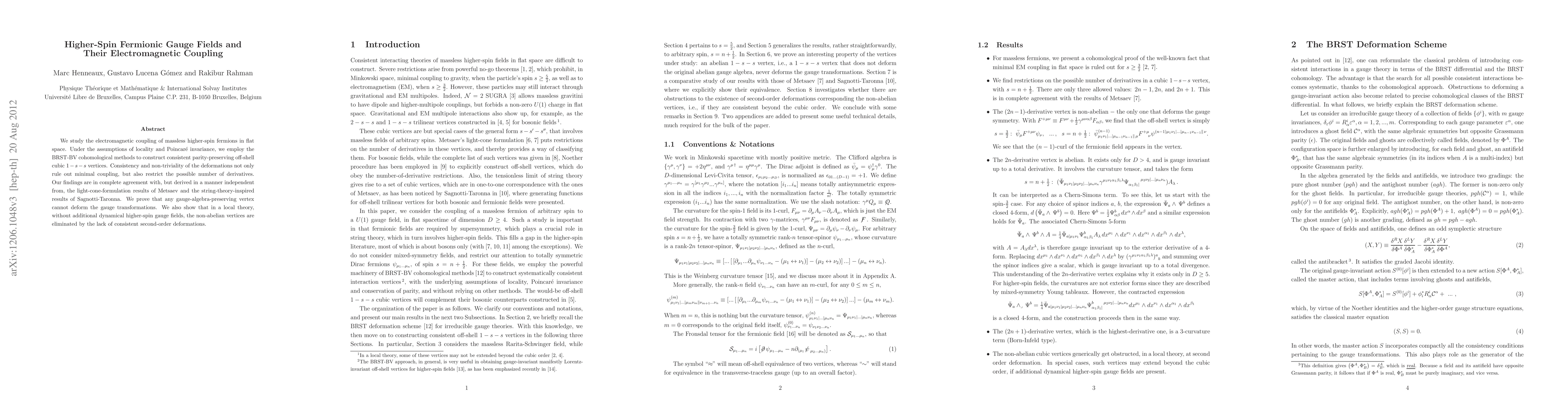 We study the electromagnetic coupling of massless higher-spin fermions in flat space. Under the assumptions of locality and Poincare invariance, we employ the BRST-BV cohomological methods to construct consistent parity-preserving off-shell cubic 1-s-s vertices. Consistency and non-triviality of the deformations not only rule out minimal coupling, but also restrict the possible number of derivatives. Our findings are in complete agreement with, but derived in a manner independent from, the light-cone-formulation results of Metsaev and the string-theory-inspired results of Sagnotti-Taronna. We prove that any gauge-algebra-preserving vertex cannot deform the gauge transformations. We also show that in a local theory, without additional dynamical higher-spin gauge fields, the non-abelian vertices are eliminated by the lack of consistent second-order deformations.