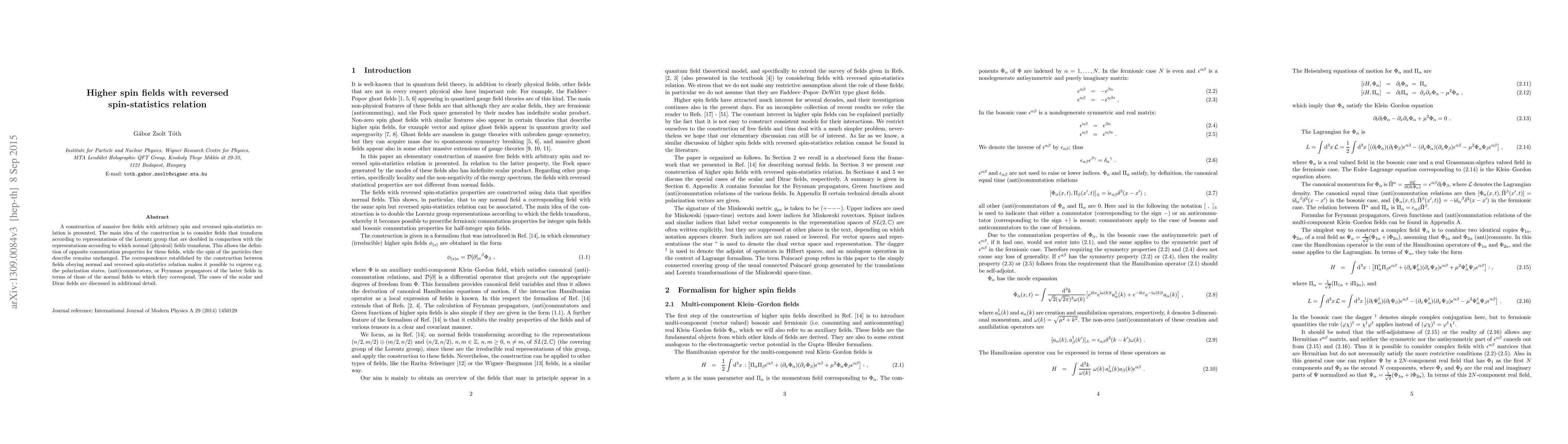 A construction of massive free fields with arbitrary spin and reversed spin-statistics relation is presented. The main idea of the construction is to consider fields that transform according to representations of the Lorentz group that are doubled in comparison with the representations according to which normal (physical) fields transform. This allows the definition of opposite commutation properties for these fields, while the spin of the particles they describe remains unchanged. The correspondence established by the construction between fields obeying normal and reversed spin-statistics relation makes it possible to express e.g. the polarization states, (anti)commutators, or Feynman propagators of the latter fields in terms of those of the normal fields to which they correspond. The cases of the scalar and Dirac fields are discussed in additional detail.