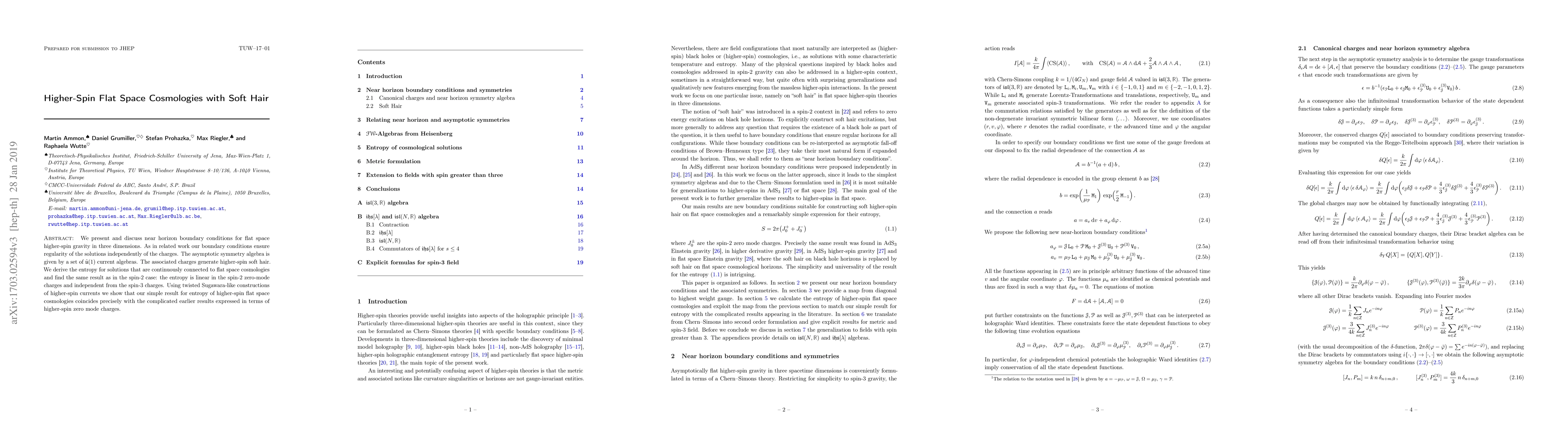 The paper introduces a set of near horizon boundary conditions for flat space higher-spin gravity, derives the asymptotic symmetry algebra, and provides a method to calculate entropy using twisted Sugawara-like constructions, linking near horizon and asymptotic quantities.