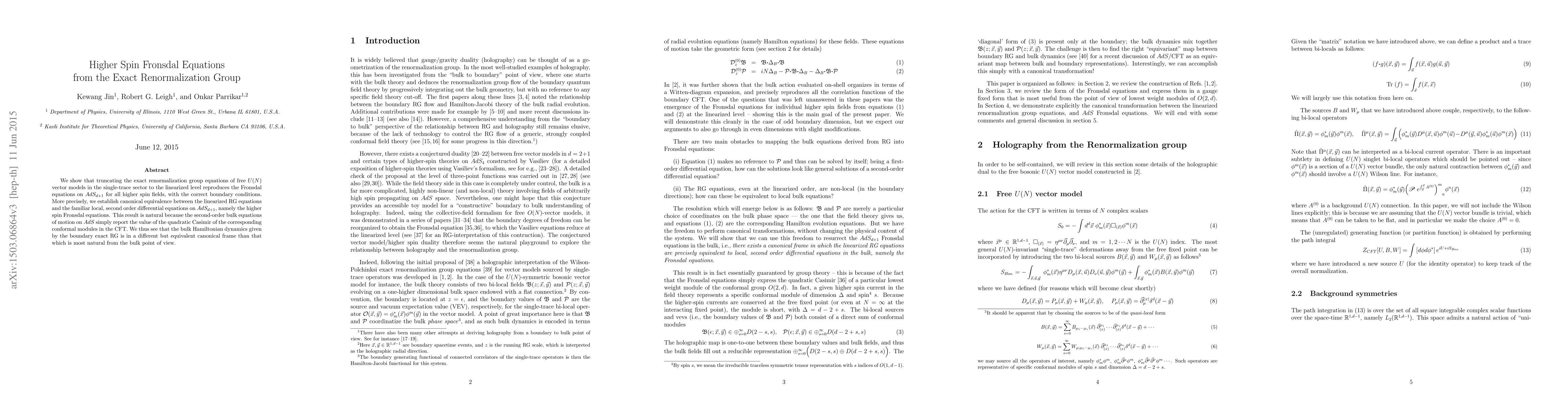 Researchers found a way to connect exact renormalization group equations with Fronsdal equations on AdS spaces, showing that bulk dynamics can be equivalent to certain boundary conditions.