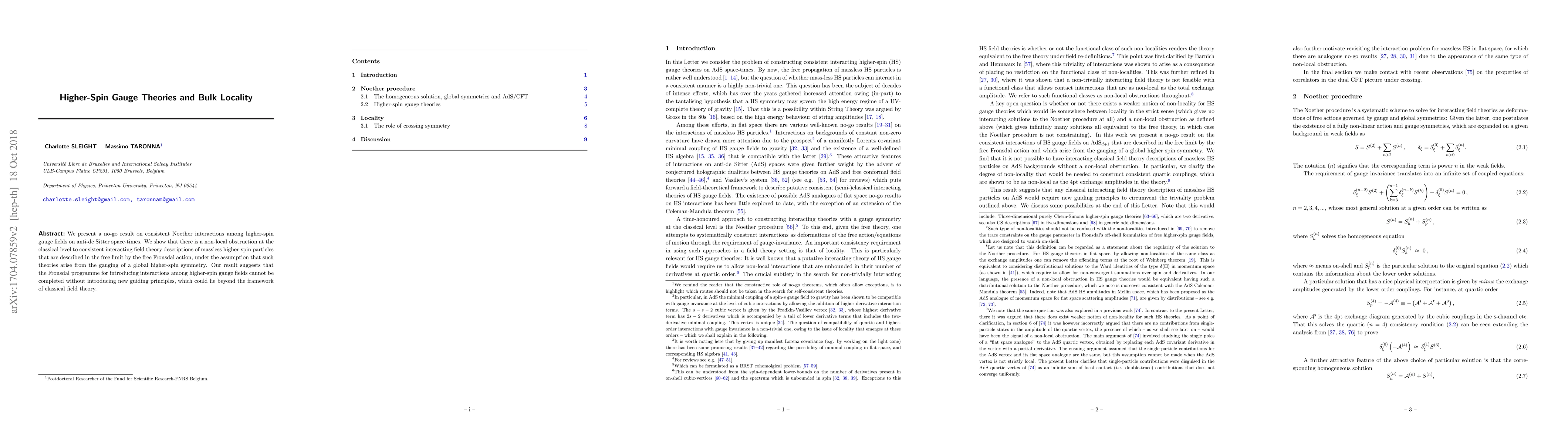 We present a no-go result on consistent Noether interactions among higher-spin gauge fields on anti-de Sitter space-times. We show that there is a non-local obstruction at the classical level to consistent interacting field theory descriptions of massless higher-spin particles that are described in the free limit by the free Fronsdal action, under the assumption that such theories arise from the gauging of a global higher-spin symmetry. Our result suggests that the Fronsdal programme for introducing interactions among higher-spin gauge fields cannot be completed without introducing new guiding principles, which could lie beyond the framework of classical field theory.