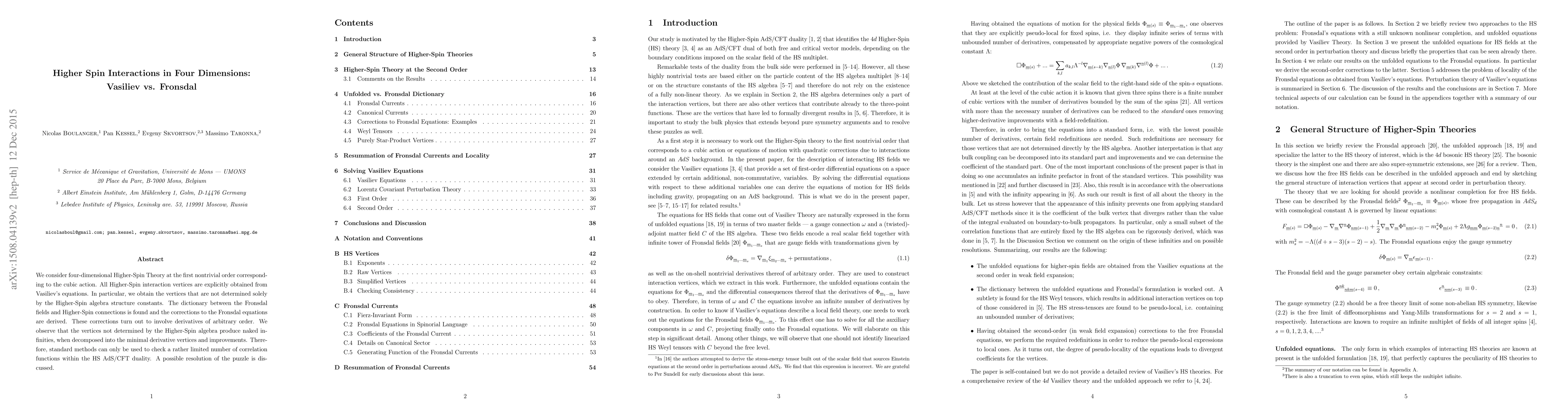 We consider four-dimensional Higher-Spin Theory at the first nontrivial order corresponding to the cubic action. All Higher-Spin interaction vertices are explicitly obtained from Vasiliev's equations. In particular, we obtain the vertices that are not determined solely by the Higher-Spin algebra structure constants. The dictionary between the Fronsdal fields and Higher-Spin connections is found and the corrections to the Fronsdal equations are derived. These corrections turn out to involve derivatives of arbitrary order. We observe that the vertices not determined by the Higher-Spin algebra produce naked infinities, when decomposed into the minimal derivative vertices and improvements. Therefore, standard methods can only be used to check a rather limited number of correlation functions within the HS AdS/CFT duality. A possible resolution of the puzzle is discussed.