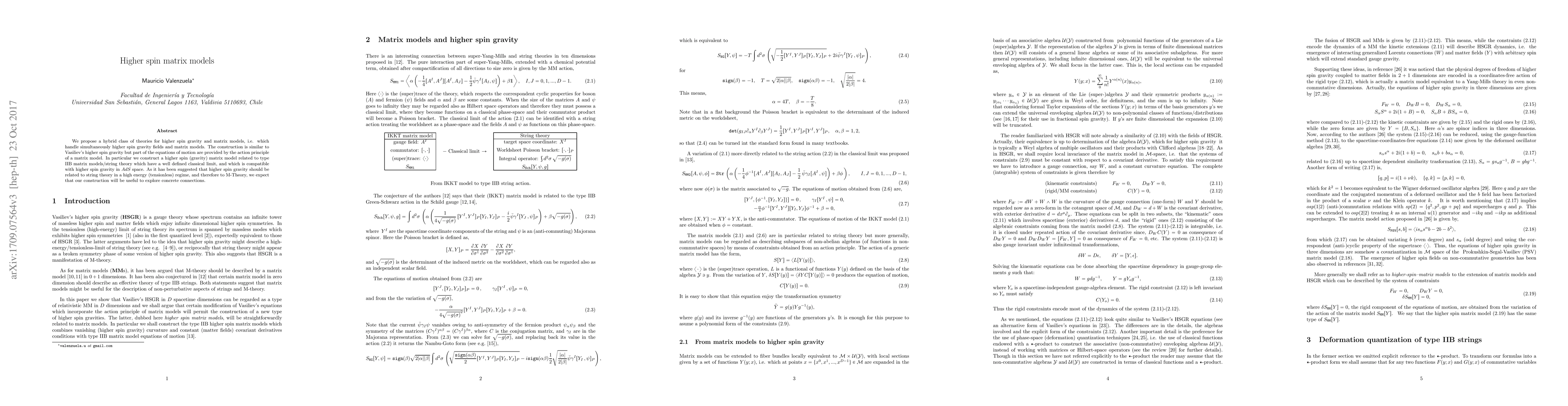 This paper proposes a new hybrid theory combining higher spin gravity and matrix models, inspired by Vasiliev's higher spin gravity but incorporating matrix model dynamics. The authors construct a higher spin gravity matrix model compatible with higher spin gravity in $AdS$ space, potentially linking higher spin gravity to string theory and M-Theory.