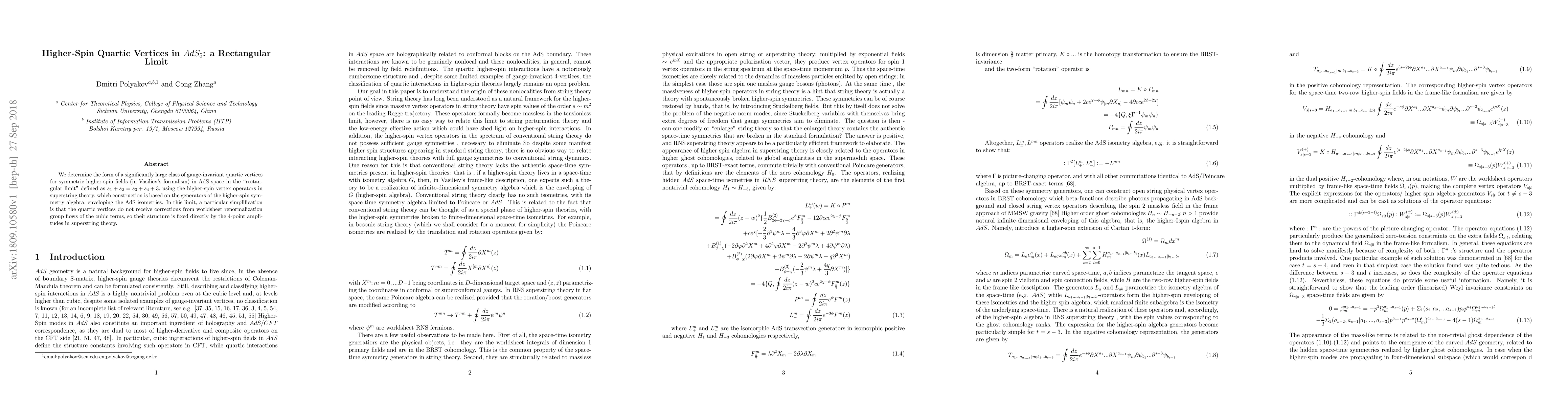 This paper determines the form of gauge-invariant quartic vertices for symmetric higher-spin fields in AdS5 space under a specific rectangular limit, using higher-spin vertex operators from superstring theory. The vertices' structure is directly derived from 4-point amplitudes in superstring theory, as they do not receive corrections from cubic terms' renormalization group flows.