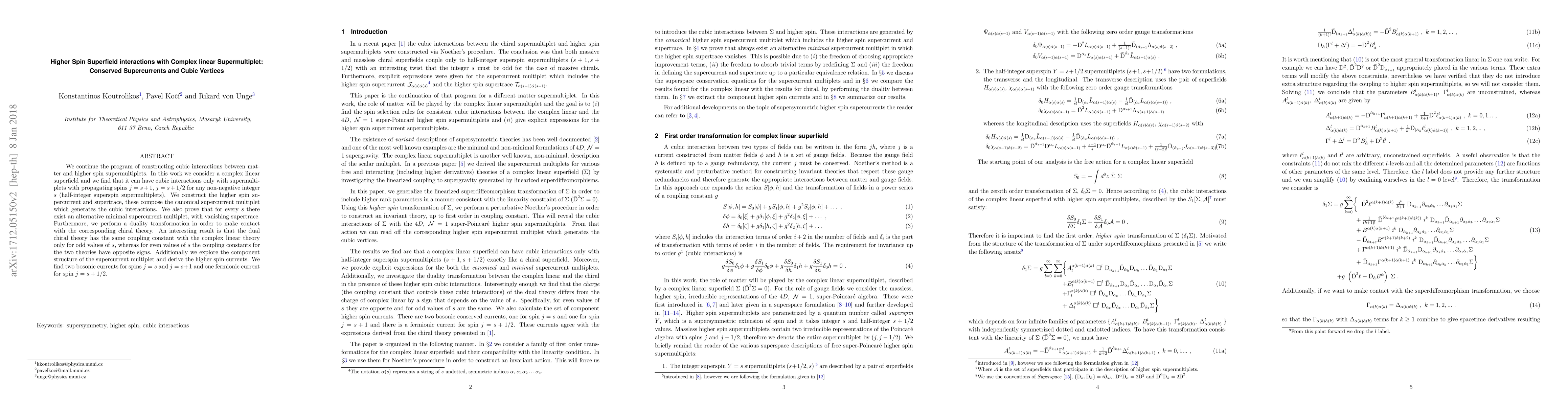 This paper constructs cubic interactions for complex linear superfields with higher spin supermultiplets, identifying specific spin conditions for interaction. It introduces higher spin supercurrents and explores dual chiral theories, noting differing coupling constants for odd and even spin values.