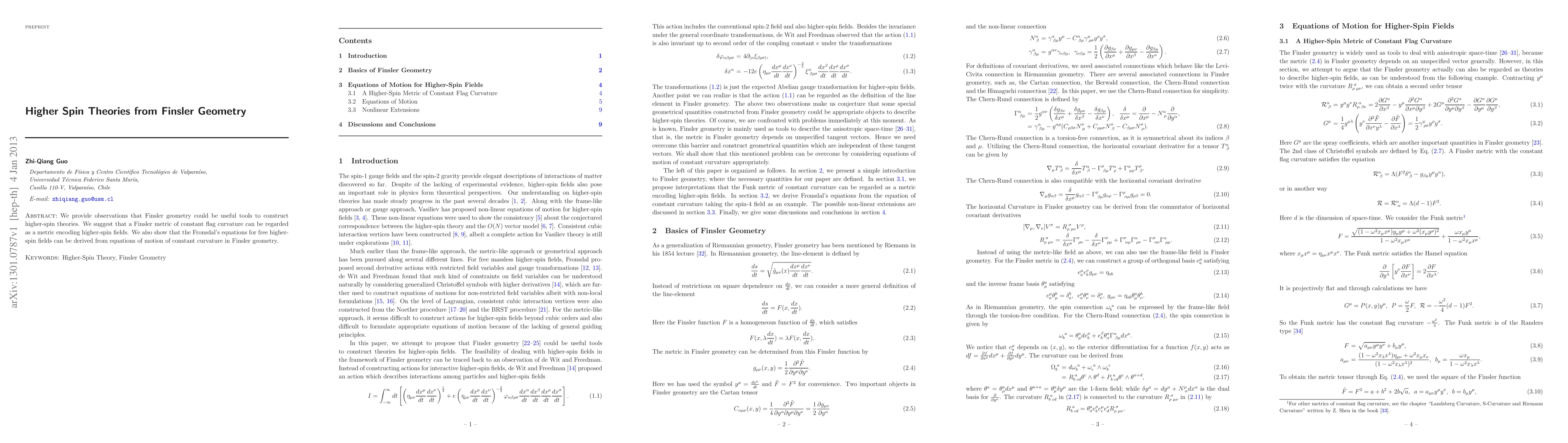 This paper explores the potential of Finsler geometry to construct higher-spin theories, suggesting that a Finsler metric with constant flag curvature can encode higher-spin fields and that Fronsdal's equations for these fields can be derived from the equations of motion in Finsler geometry.