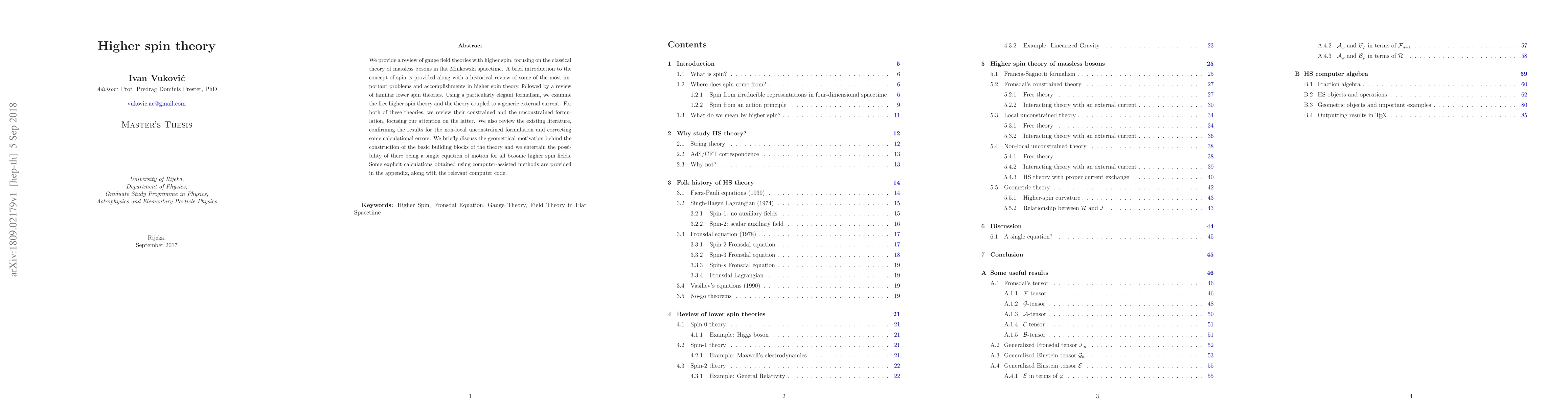 This paper reviews higher spin theory, a branch of physics that studies massless bosons in flat spacetime, and examines its constrained and unconstrained formulations, including the possibility of a single equation of motion for all bosonic higher spin fields.