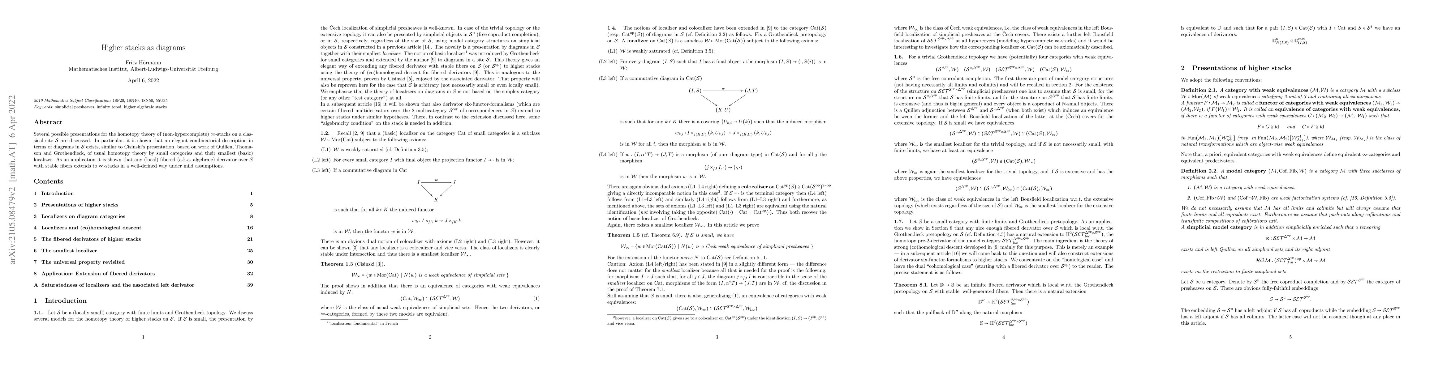 Several possible presentations for the homotopy theory of (non-hypercomplete) $\infty$-stacks on a classical site S are discussed. In particular, it is shown that an elegant combinatorial description in terms of diagrams in S exists, similar to Cisinski's presentation, based on work of Quillen, Thomason and Grothendieck, of usual homotopy theory by small categories and their smallest (basic) localizer. As an application it is shown that any (local) fibered (a.k.a. algebraic) derivator over S with stable fibers extends to $\infty$-stacks in a well-defined way under mild assumptions.
