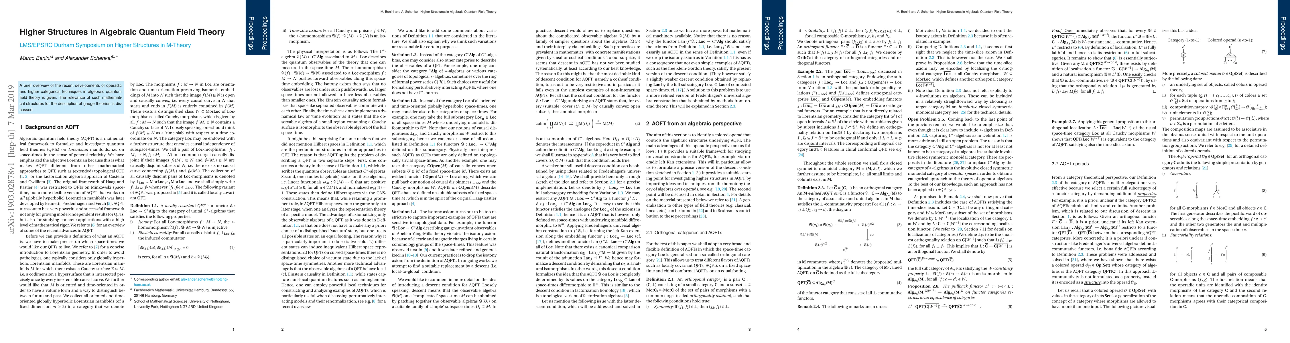 Summary: This paper provides an overview of recent advancements in using operadic and higher categorical methods in algebraic quantum field theory, highlighting their importance for modeling gauge theories.