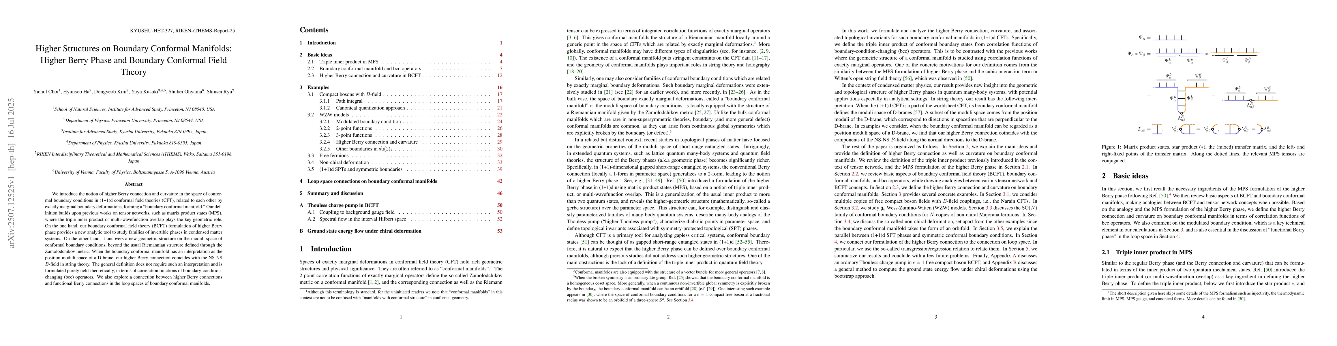 We introduce the notion of higher Berry connection and curvature in the space of conformal boundary conditions in (1+1)d conformal field theories (CFT), related to each other by exactly marginal boundary deformations, forming a "boundary conformal manifold." Our definition builds upon previous works on tensor networks, such as matrix product states (MPS), where the triple inner product or multi-wavefunction overlap plays the key geometric role. On the one hand, our boundary conformal field theory (BCFT) formulation of higher Berry phase provides a new analytic tool to study families of invertible phases in condensed matter systems. On the other hand, it uncovers a new geometric structure on the moduli space of conformal boundary conditions, beyond the usual Riemannian structure defined through the Zamolodchikov metric. When the boundary conformal manifold has an interpretation as the position moduli space of a D-brane, our higher Berry connection coincides with the NS-NS $B$-field in string theory. The general definition does not require such an interpretation and is formulated purely field-theoretically, in terms of correlation functions of boundary-condition-changing (bcc) operators. We also explore a connection between higher Berry connections and functional Berry connections in the loop spaces of boundary conformal manifolds.
