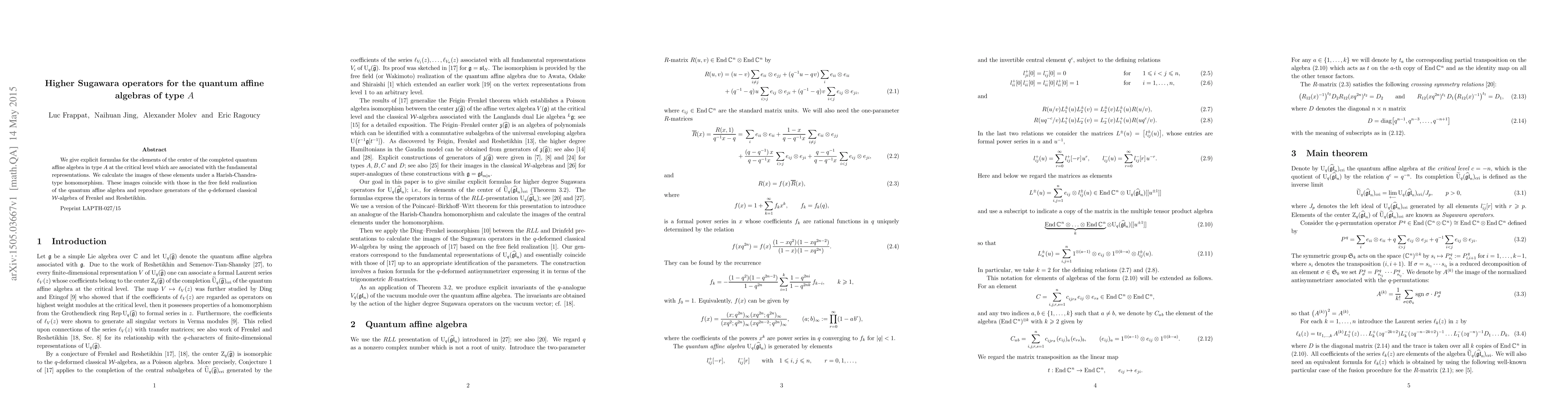 Researchers developed explicit formulas for center elements of a quantum affine algebra, showing they match those in a free field realization, which helps reproduce generators of the q-deformed classical W-algebra.