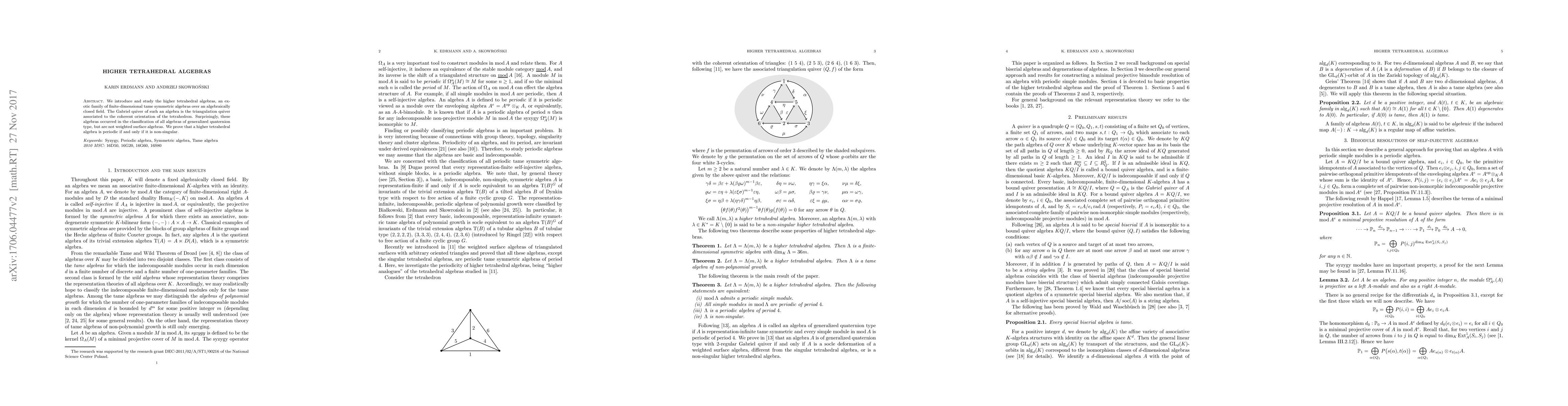 We introduce and study the higher tetrahedral algebras, an exotic family of finite-dimensional tame symmetric algebras over an algebraically closed field. The Gabriel quiver of such an algebra is the triangulation quiver associated to the coherent orientation of the tetrahedron. Surprisingly, these algebras occurred in the classification of all algebras of generalised quaternion type, but are not weighted surface algebras. We prove that a higher tetrahedral algebra is periodic if and only if it is non-singular.