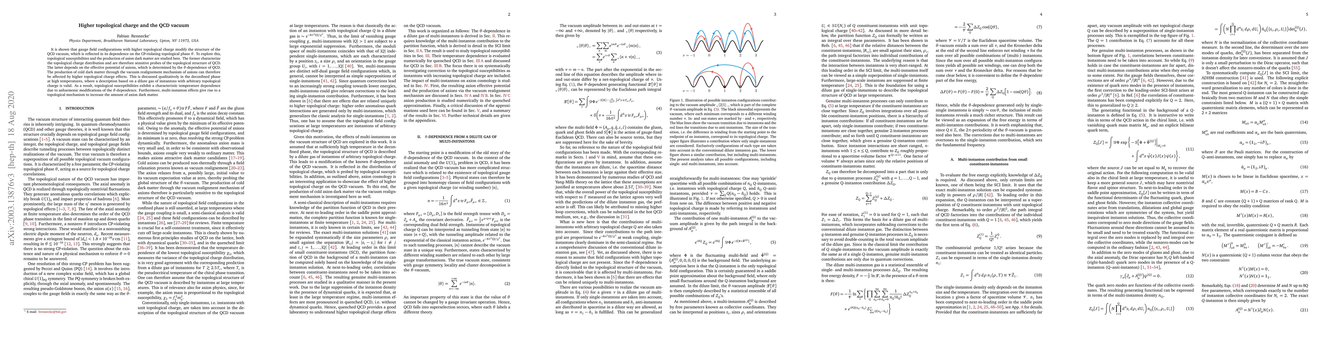 This paper investigates how gauge field configurations with higher topological charge influence the QCD vacuum, particularly through the CP-violating topological phase $\theta$. It explores topological susceptibilities and axion dark matter production, revealing that higher topological charges can modify the vacuum structure and affect the production of axion dark matter via the vacuum realignment mechanism.