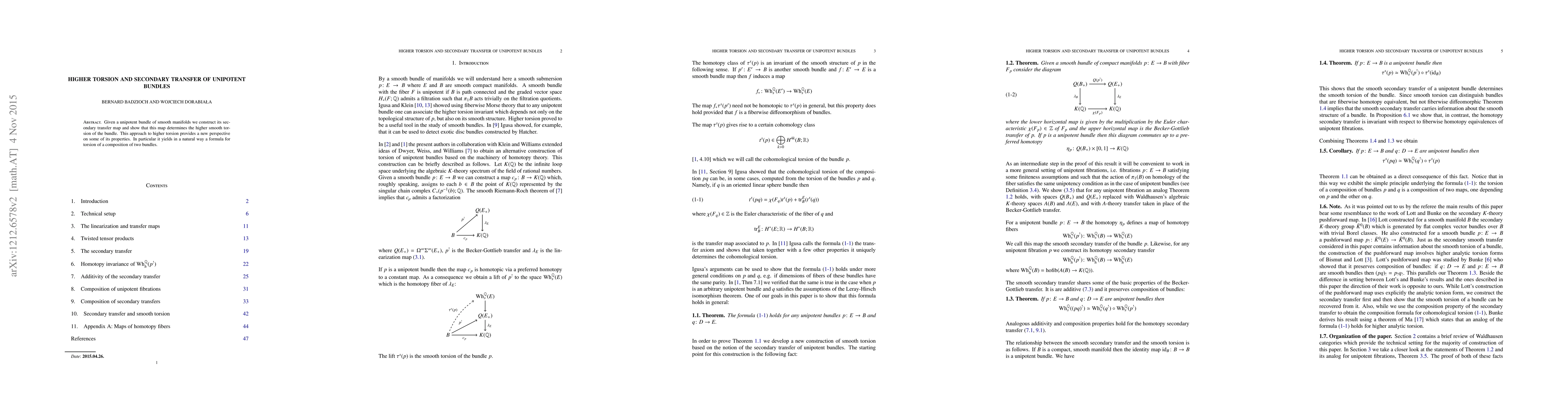 This paper constructs a secondary transfer map for unipotent bundles of smooth manifolds and demonstrates that this map determines the bundle's higher smooth torsion, offering a novel perspective on its properties, particularly in deriving a formula for the torsion of composed bundles.