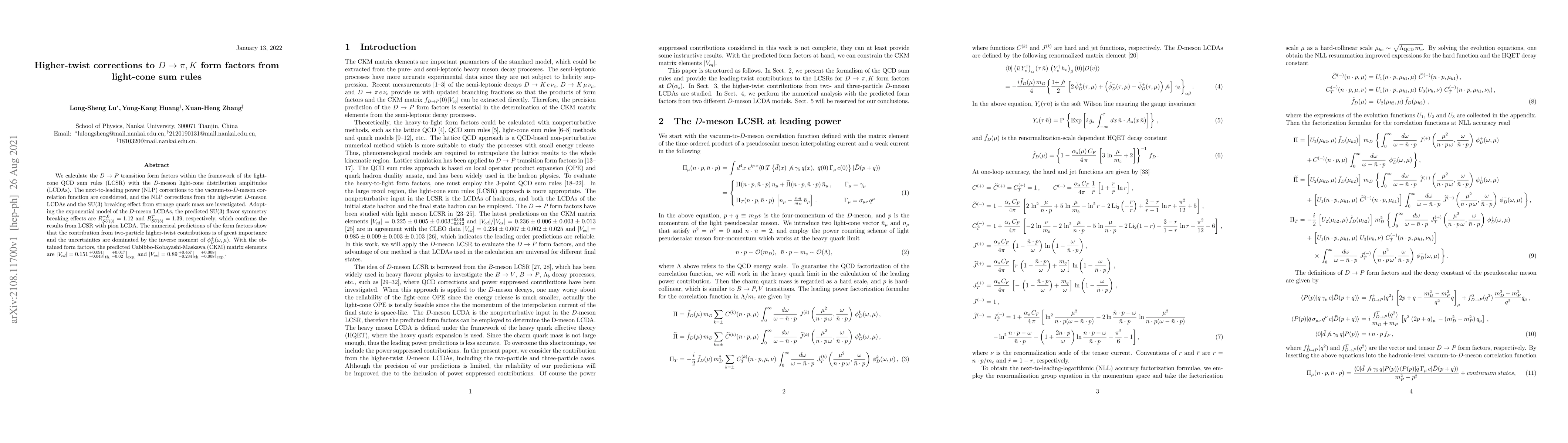 Researchers used light-cone QCD sum rules to calculate form factors for a D-to-P transition, finding that higher-twist corrections significantly affect the results. The calculations confirm previous findings and provide new predictions for Cabibbo-Kobayashi-Maskawa matrix elements.