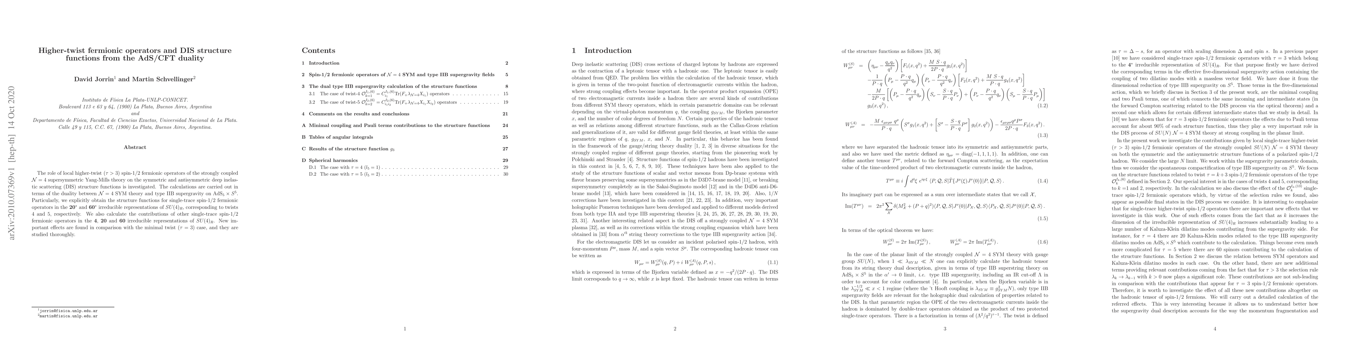 This paper investigates the impact of higher-twist spin-1/2 fermionic operators in ${\cal {N}}=4$ supersymmetric Yang-Mills theory on deep inelastic scattering structure functions via the AdS/CFT duality. It calculates structure functions for various fermionic operators and finds significant new effects compared to the minimal twist case.