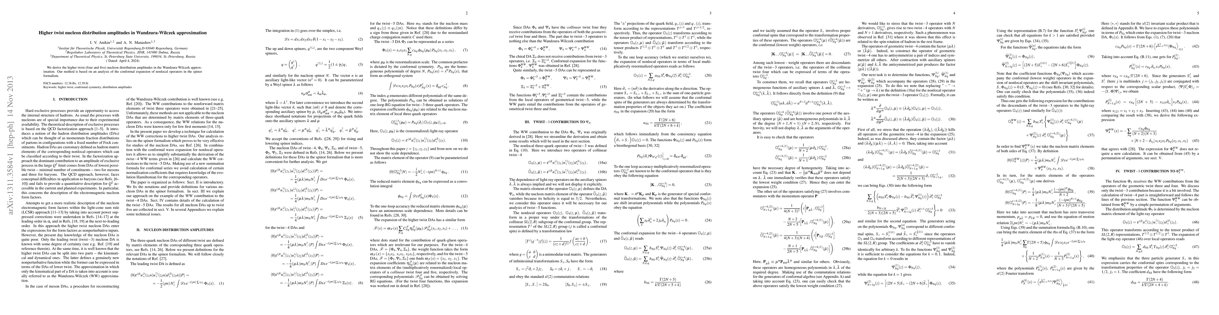 Researchers derived higher twist nucleon distribution amplitudes using a conformal expansion method in the Wandzura-Wilczek approximation.