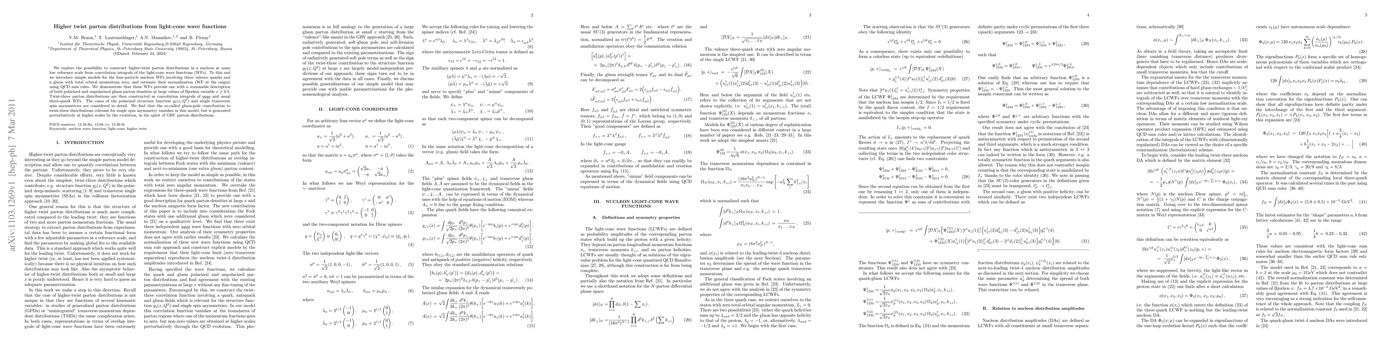 This paper constructs higher-twist parton distributions from light-cone wave functions, demonstrating their applicability to both polarized and unpolarized gluon densities. It finds that the gluon-pole contribution to twist-three distributions vanishes initially but is generated perturbatively at higher scales.