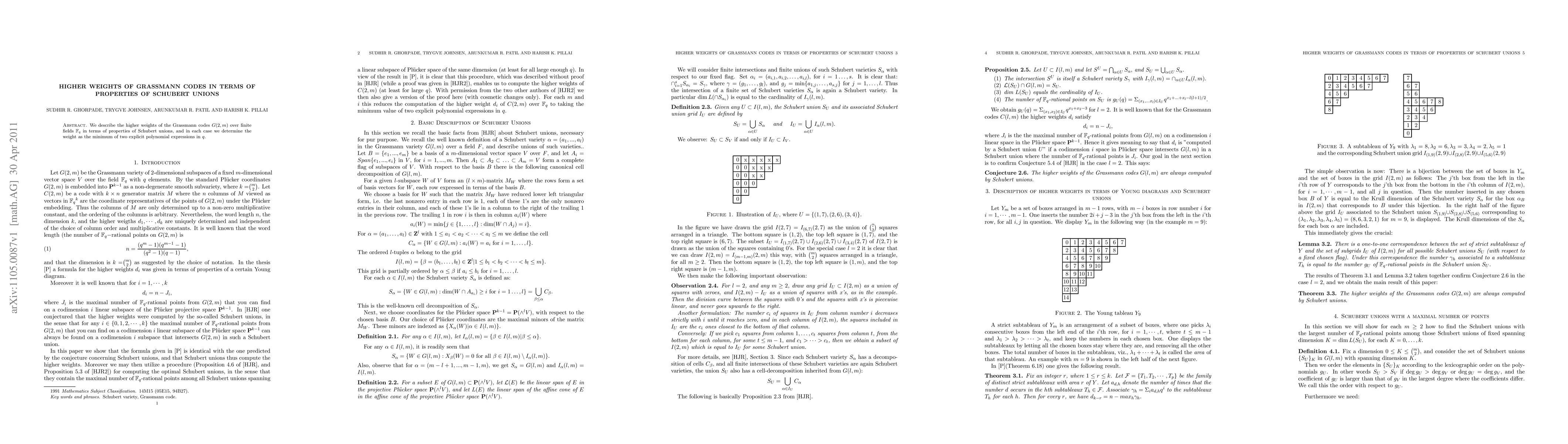 We describe the higher weights of the Grassmann codes $G(2,m)$ over finite fields ${\mathbb F}_q$ in terms of properties of Schubert unions, and in each case we determine the weight as the minimum of two explicit polynomial expressions in $q$.