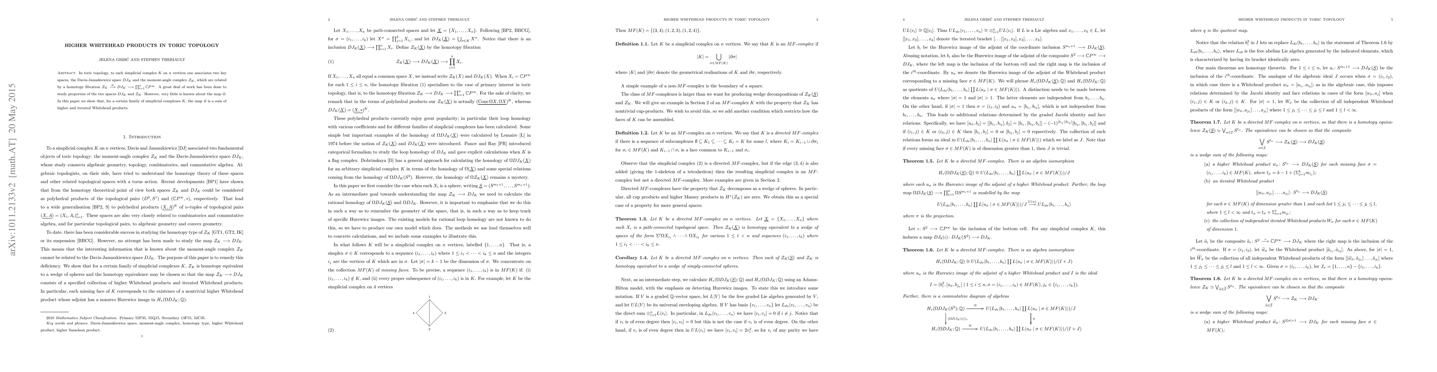 In this paper we study the relationship between the moment-angle complex Z_k and the Davis-Januskiewicz space DJ(K) for a class of complexes K named missing-face complexes. If K has n vertices we consider the homotopy fibration sequence Z_k --> DJ(K) --> M where M is a product of n copies of infinite complex projective space. We observe that for such K, Z_k is homotopy equivalent to a wedge of spheres, and then show that under this equivalence the map Z_k --> DJ(K) is homotopic to a wedge sum of higher Whitehead products and iterated Whitehead products.