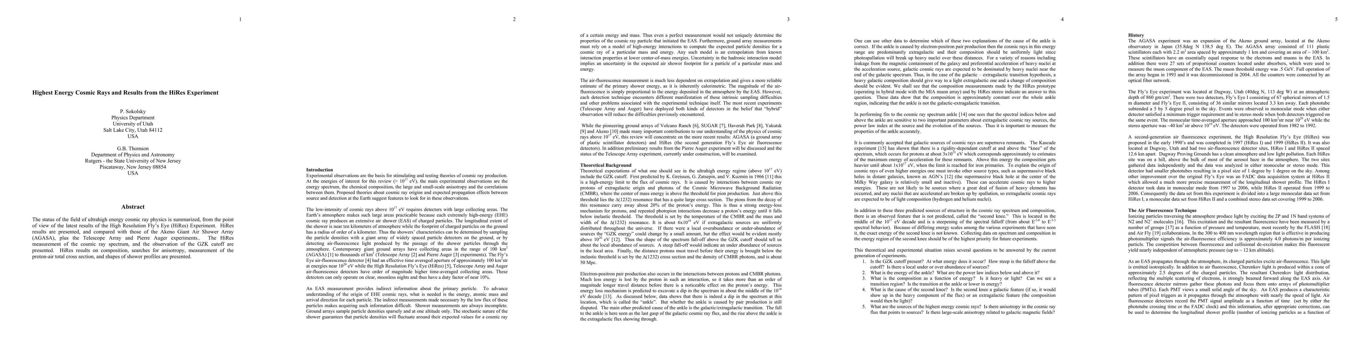 The HiRes experiment utilized a stereo air-fluorescence technique to measure ultrahigh energy cosmic rays, comparing results with AGASA, Telescope Array, and Pierre Auger experiments.