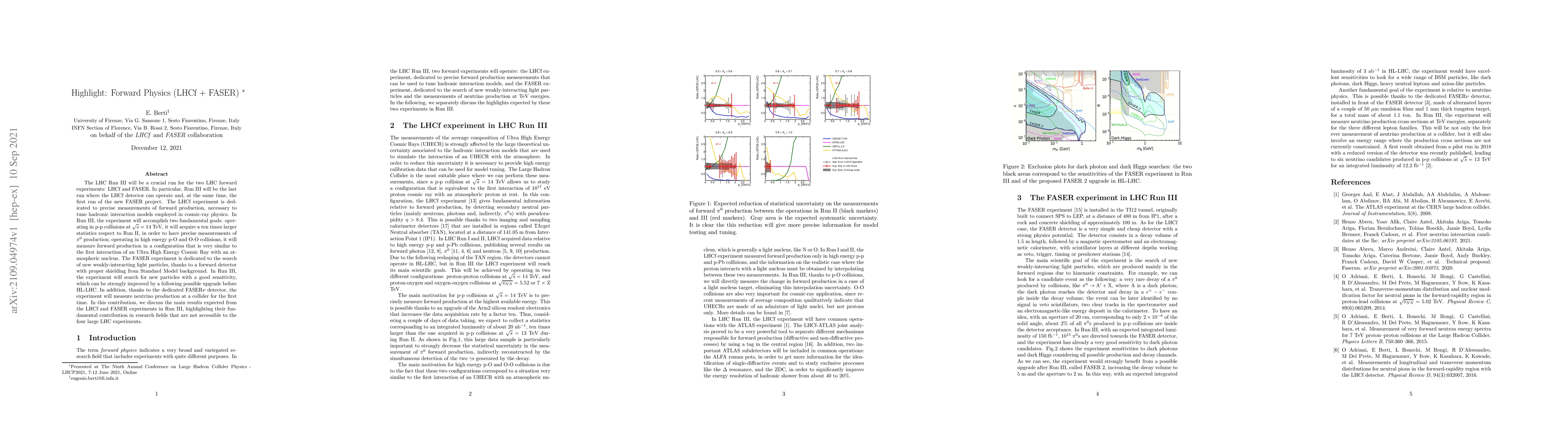 The LHC Run III will see the final operational run of the LHCf experiment, which aims to measure forward production to refine cosmic-ray physics models, and the inaugural run of the FASER project, dedicated to detecting new weakly-interacting particles and measuring collider neutrinos for the first time.