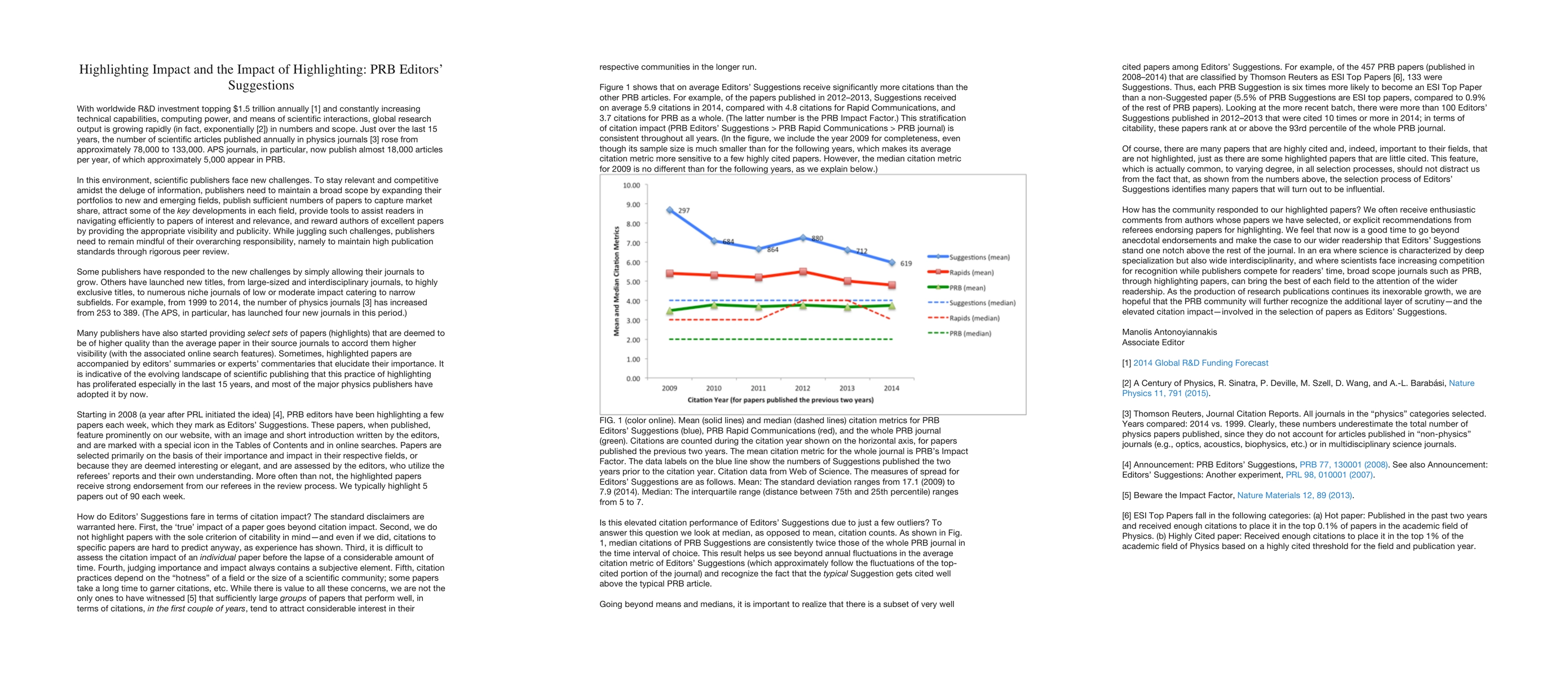 This paper discusses how the journal PRB highlights a select few papers each week as Editors' Suggestions based on their importance and impact. The additional scrutiny in selecting these papers correlates with a notably higher and enduring citation rate, underscoring the significance of this highlighting practice.