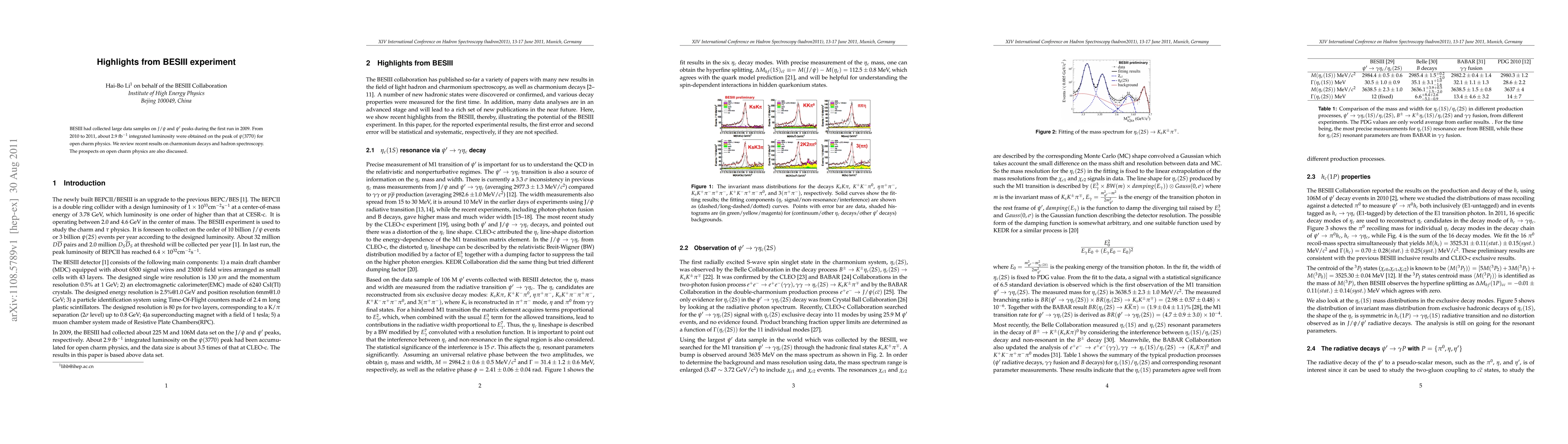 BESIII had collected large data samples on $J/\psi$ and $\psi^\prime$ peaks during the first run in 2009. From 2010 to 2011, about 2.9 fb$^{-1}$ integrated luminosity were obtained on the peak of $\psi(3770)$ for open charm physics. We review recent results on charmonium decays and hadron spectroscopy. The prospects on open charm physics are also discussed.