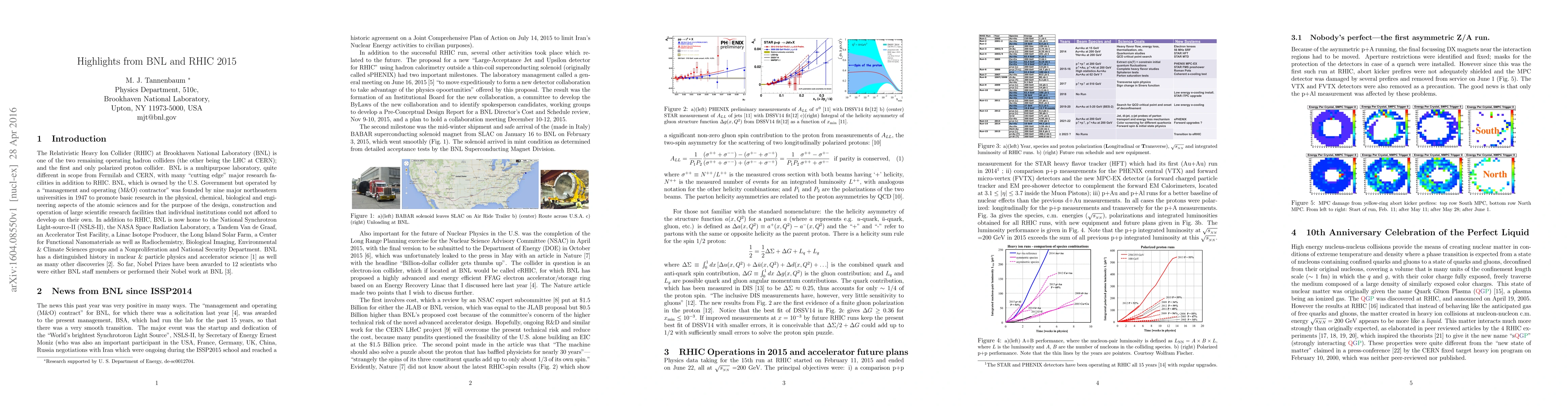 This paper summarizes positive developments from Brookhaven National Laboratory (BNL) and the Relativistic Heavy Ion Collider (RHIC) from July 2014 to June 2015, including the startup of NSLS II and outstanding RHIC operations. Notably, RHIC achieved unprecedented polarized p+p luminosity and conducted first asymmetric p+Au and p+Al runs, though the latter caused detector damage.