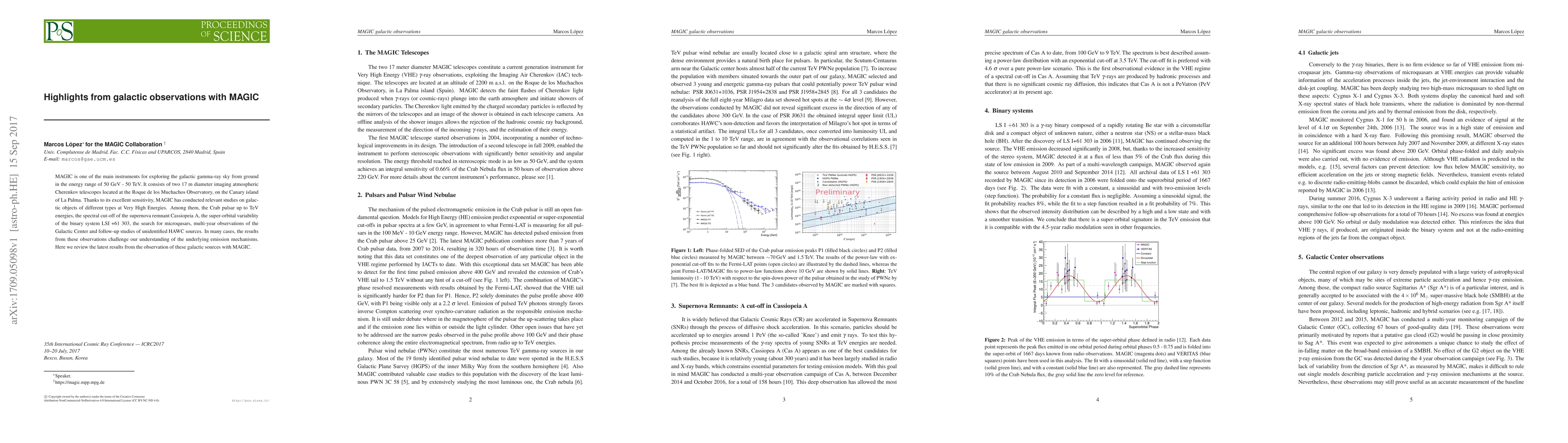 MAGIC, a ground-based gamma-ray observatory, has provided significant insights into high-energy galactic phenomena, including studies on the Crab pulsar, supernova remnant Cassiopeia A, and the Galactic Center, challenging our understanding of their emission mechanisms.