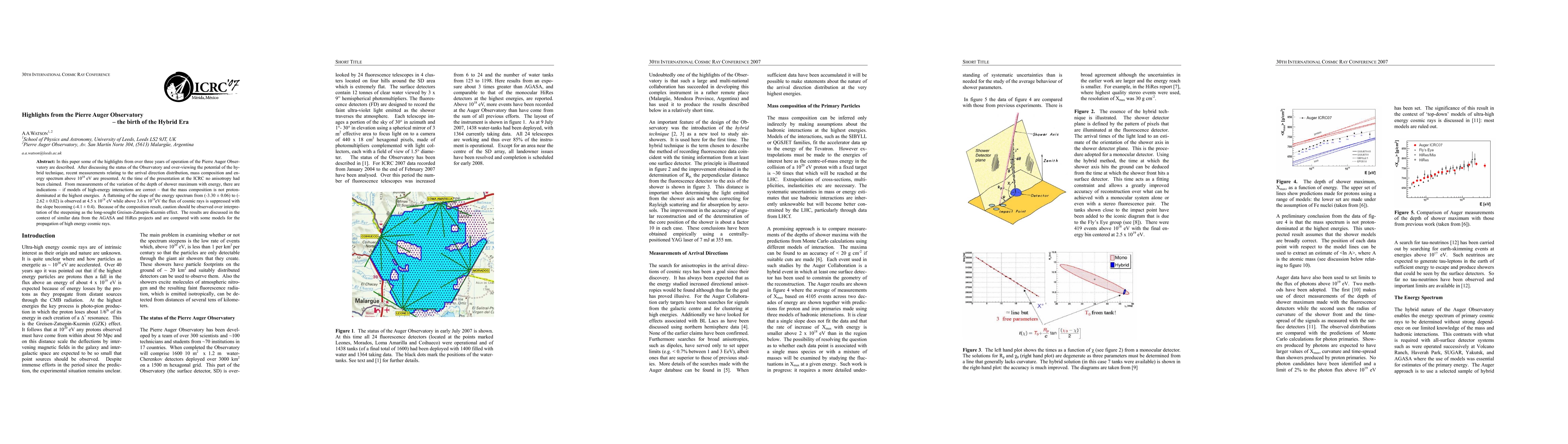 Summary: The Pierre Auger Observatory provides insights into the cosmic ray energy spectrum from 0.3 EeV to 100 EeV and explores the mass composition of cosmic rays above 1 EeV, marking the advent of the hybrid observation era.
