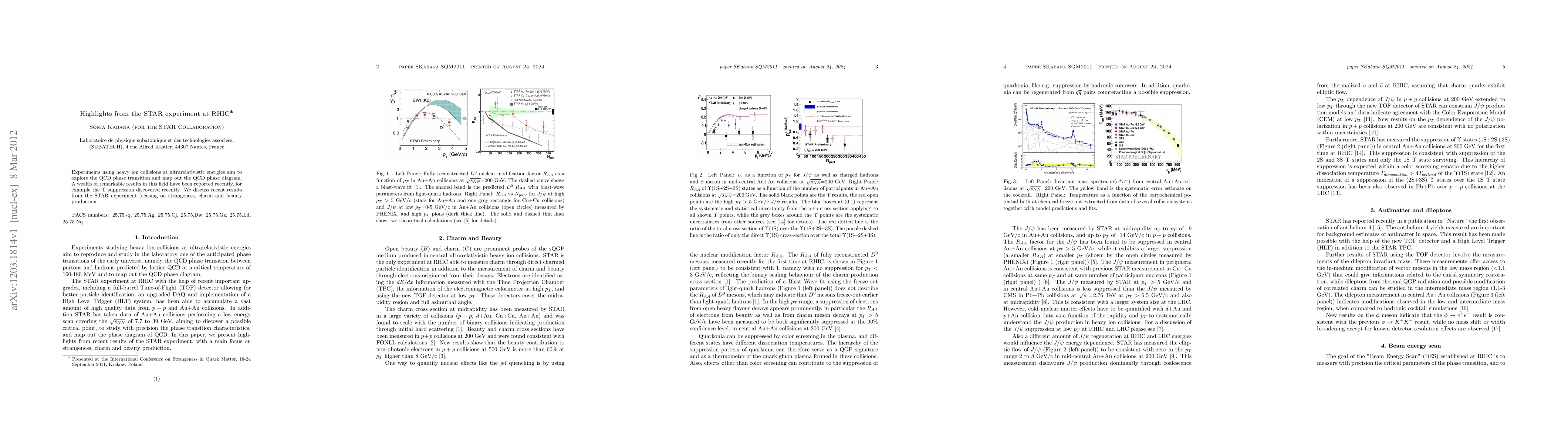 Experiments using heavy ion collisions at ultrarelativistic energies aim to explore the QCD phase transition and map out the QCD phase diagram. A wealth of remarkable results in this field have been reported recently, for example the Upsilon suppression discovered recently. We discuss recent results from the STAR experiment focusing on strangeness, charm and beauty production.