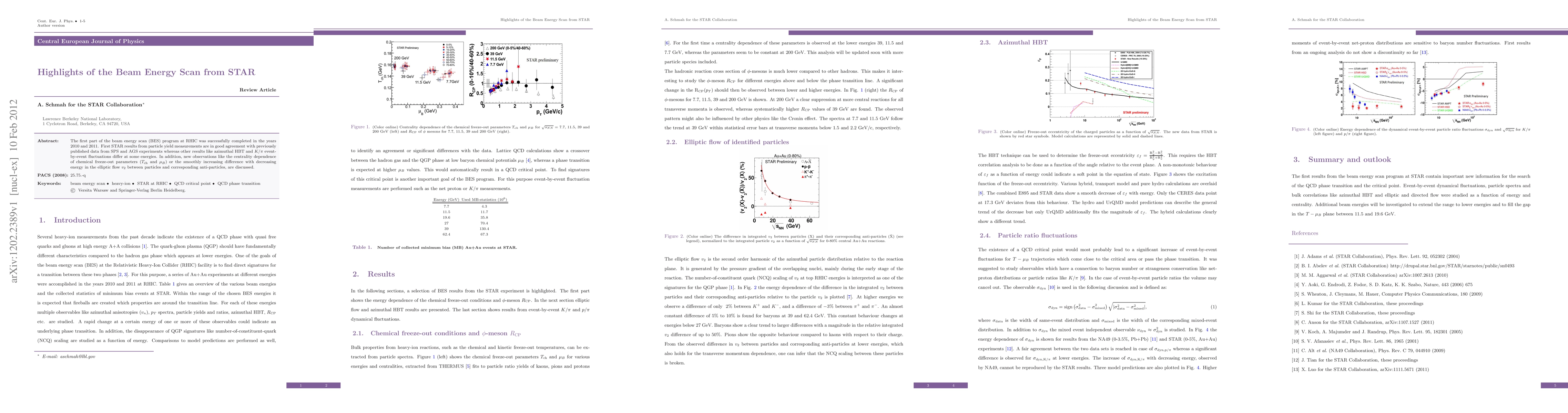 The STAR collaboration completed the first part of the beam energy scan at RHIC, finding results consistent with previous SPS and AGS data but noting differences in certain measurements. New findings include centrality dependence of chemical freeze-out parameters and a smooth increase in elliptic flow differences between particles and anti-particles.