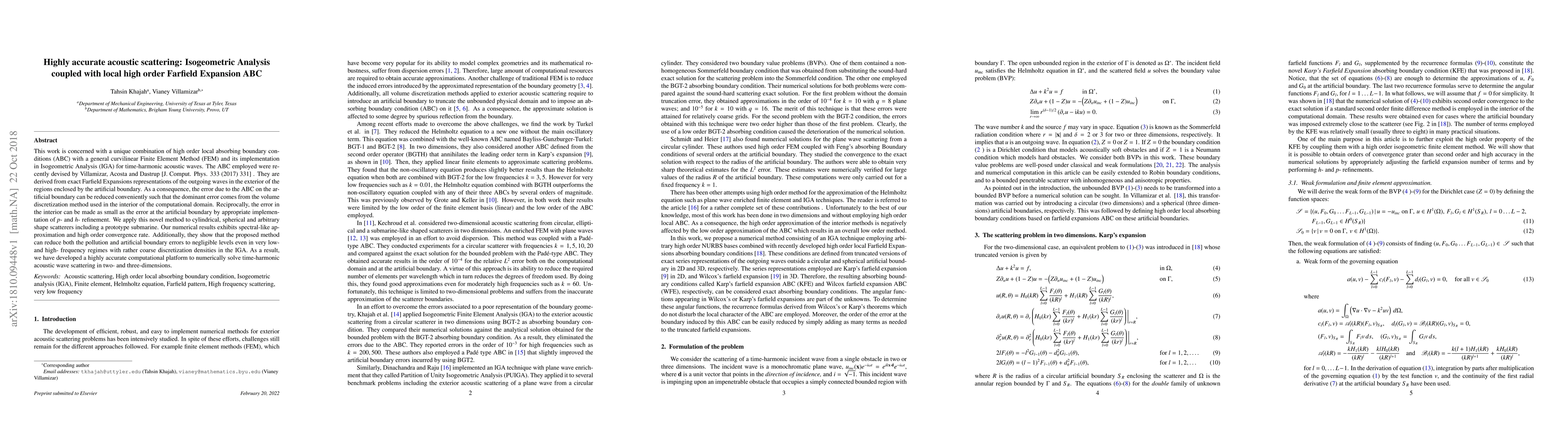 Researchers developed a highly accurate method for simulating acoustic wave scattering in 2D and 3D using Isogeometric Analysis coupled with local high order Farfield Expansion ABCs, achieving spectral-like approximation and high order convergence rate.