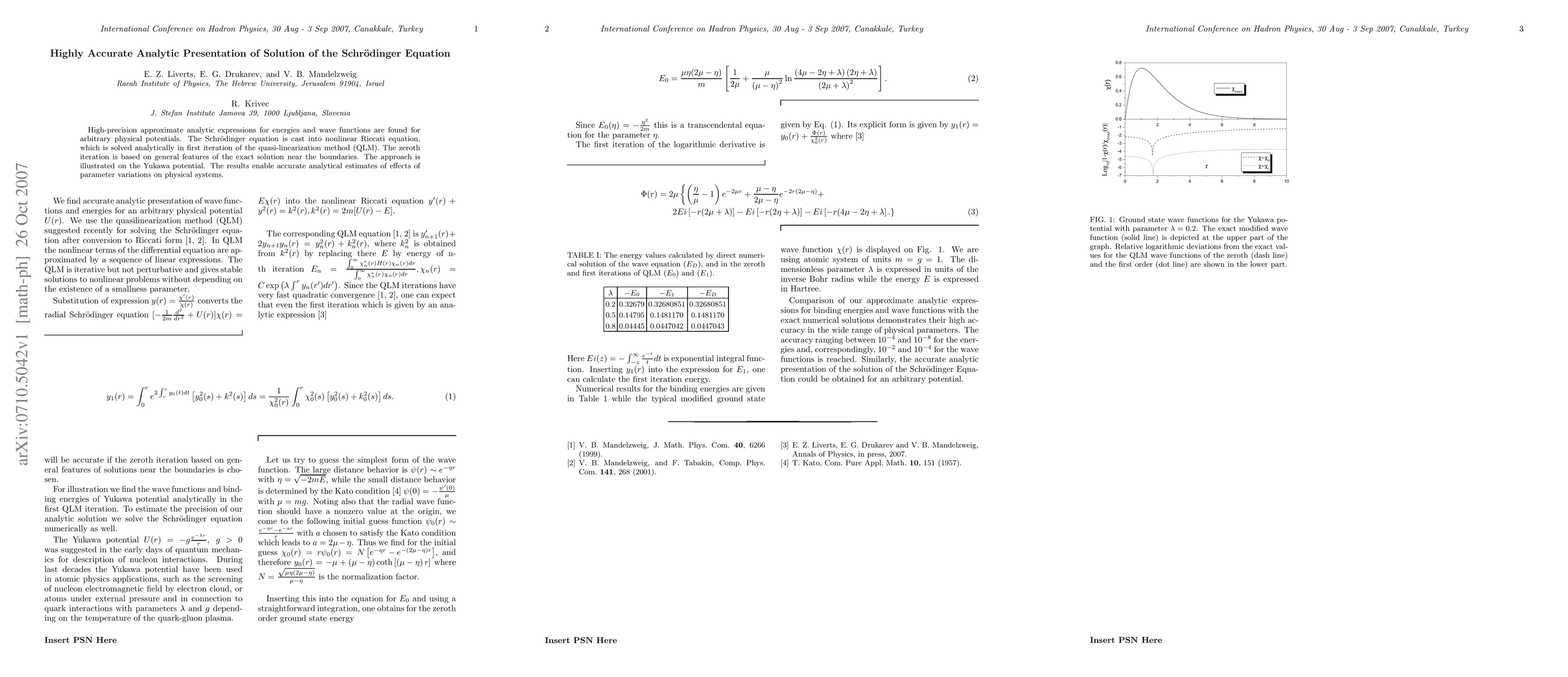 High-precision approximate analytic expressions for energies and wave functions are found for arbitrary physical potentials. The Schr\"{o}dinger equation is cast into nonlinear Riccati equation, which is solved analytically in first iteration of the quasi-linearization method (QLM). The zeroth iteration is based on general features of the exact solution near the boundaries. The approach is illustrated on the Yukawa potential. The results enable accurate analytical estimates of effects of parameter variations on physical systems.