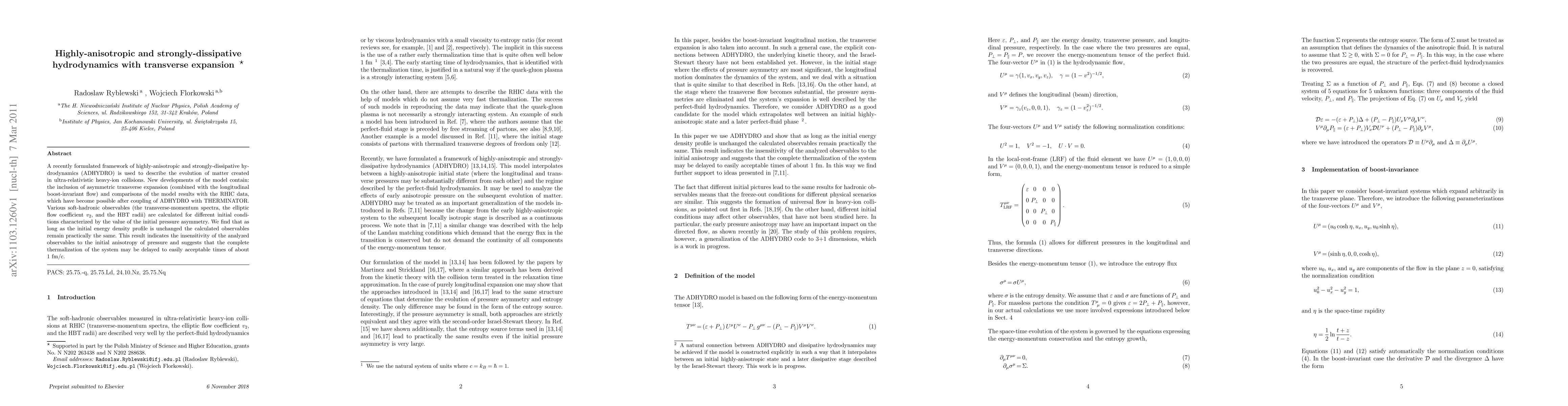 A recently formulated framework of highly-anisotropic and strongly-dissipative hydrodynamics (ADHYDRO) is used to describe the evolution of matter created in ultra-relativistic heavy-ion collisions. New developments of the model contain: the inclusion of asymmetric transverse expansion (combined with the longitudinal boost-invariant flow) and comparisons of the model results with the RHIC data, which have become possible after coupling of ADHYDRO with THERMINATOR. Various soft-hadronic observables (the transverse-momentum spectra, the elliptic flow coefficient v_2, and the HBT radii) are calculated for different initial conditions characterized by the value of the initial pressure asymmetry. We find that as long as the initial energy density profile is unchanged the calculated observables remain practically the same. This result indicates the insensitivity of the analyzed observables to the initial anisotropy of pressure and suggests that the complete thermalization of the system may be delayed to easily acceptable times of about 1 fm/c.
