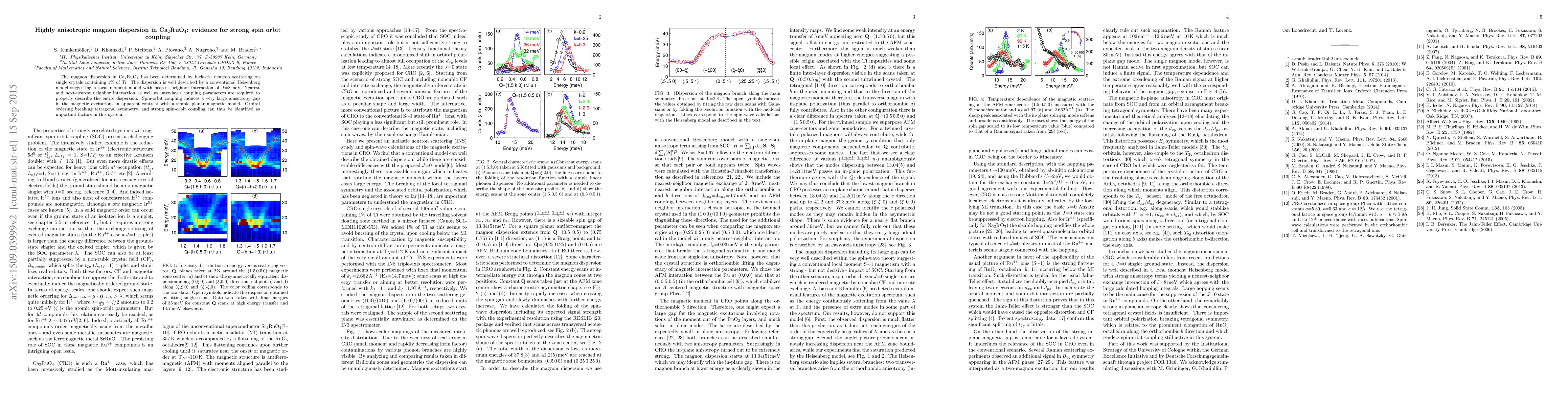 The magnon dispersion in Ca2RuO4 reveals strong spin-orbit coupling and significant anisotropy, challenging simple planar magnetic models and suggesting orbital ordering and symmetry breaking as key factors. The dispersion is well-fitted by a Heisenberg model with interactions up to next-nearest neighbors.