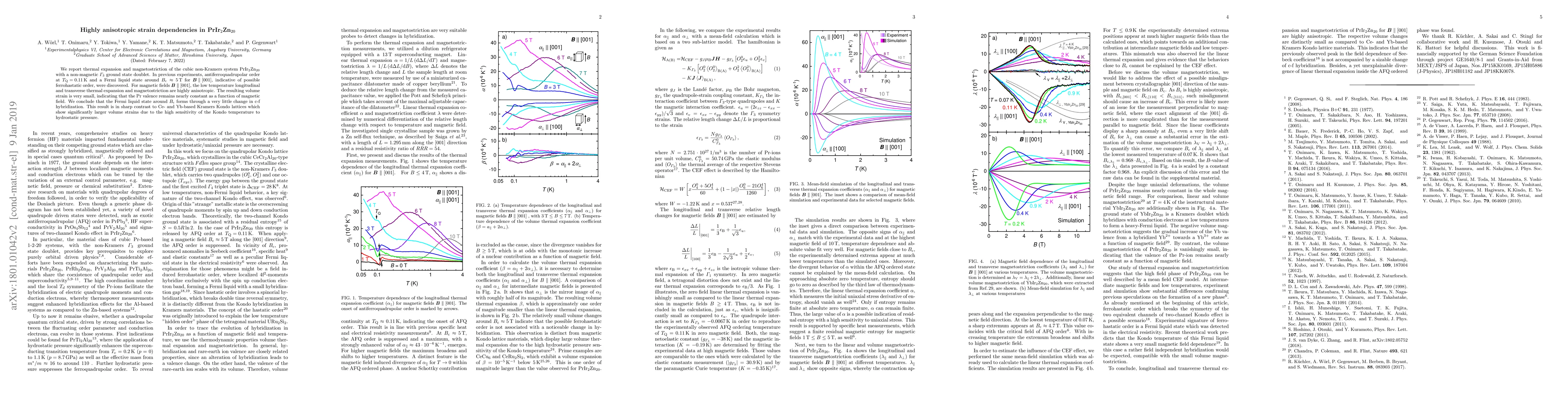 We report thermal expansion and magnetostriction of the cubic non-Kramers system PrIr$_2$Zn$_{20}$ with a non-magnetic $\varGamma_{3}$ ground state doublet. In previous experiments, antiferroquadrupolar order at \hbox{$T_{\mathrm{Q}}=0.11$\,K} and a Fermi liquid state around $B_{\mathrm{c}}\approx5$\,T for \hbox{$\boldsymbol{B}\parallel[001]$}, indicative of possible ferrohastatic order, were discovered. For magnetic fields \hbox{$\boldsymbol{B}\parallel[001]$}, the low temperature longitudinal and transverse thermal expansion and magnetostriction are highly anisotropic. The resulting volume strain is very small, indicating that the Pr valence remains nearly constant as a function of magnetic field. We conclude that the Fermi liquid state around $B_{\mathrm{c}}$ forms through a very little change in c-f hybridization. This result is in sharp contrast to Ce- and Yb-based Kramers Kondo lattices which show significantly larger volume strains due to the high sensitivity of the Kondo temperature to hydrostatic pressure.