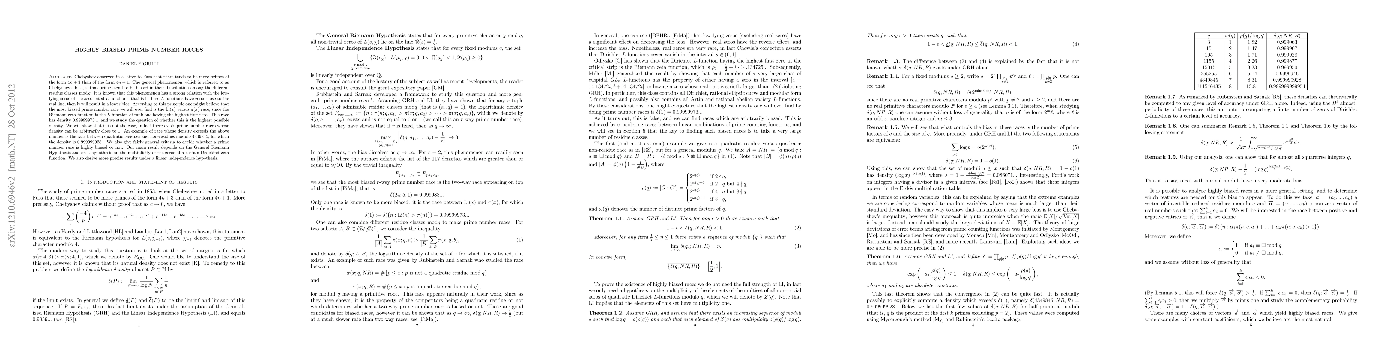 The paper introduces a method to construct prime number races with densities arbitrarily close to 1, utilizing advanced hypotheses on L-functions and providing general criteria for bias.